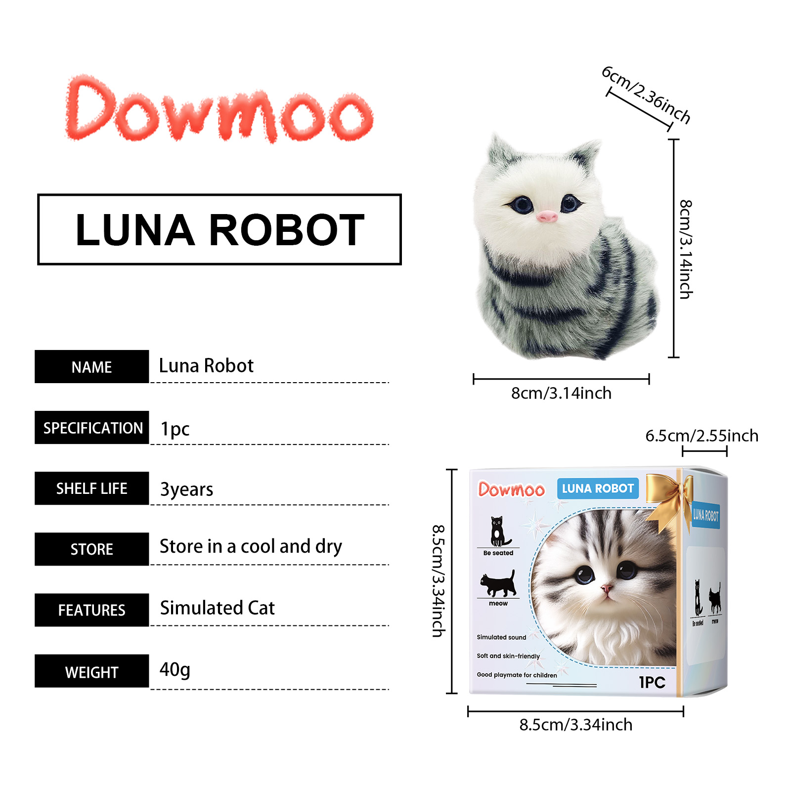 Dowmoo Toy Cat Toy Cat Sound Interactive Amusement Children Playmate Simulation Cat Plush Toy