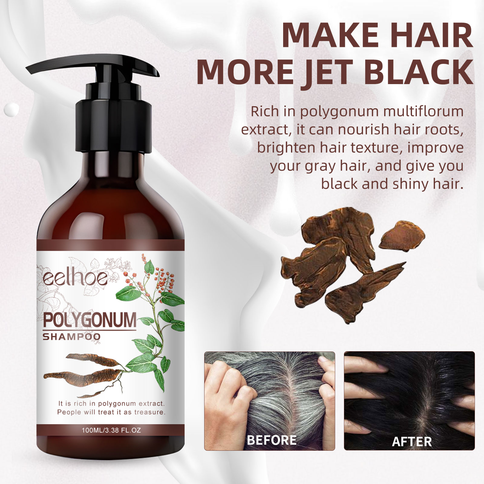 EELHOE Polygonum Shampoo, Clean And Nourish Hair Roots Natural Black Hair Strong And Solid Hair Care