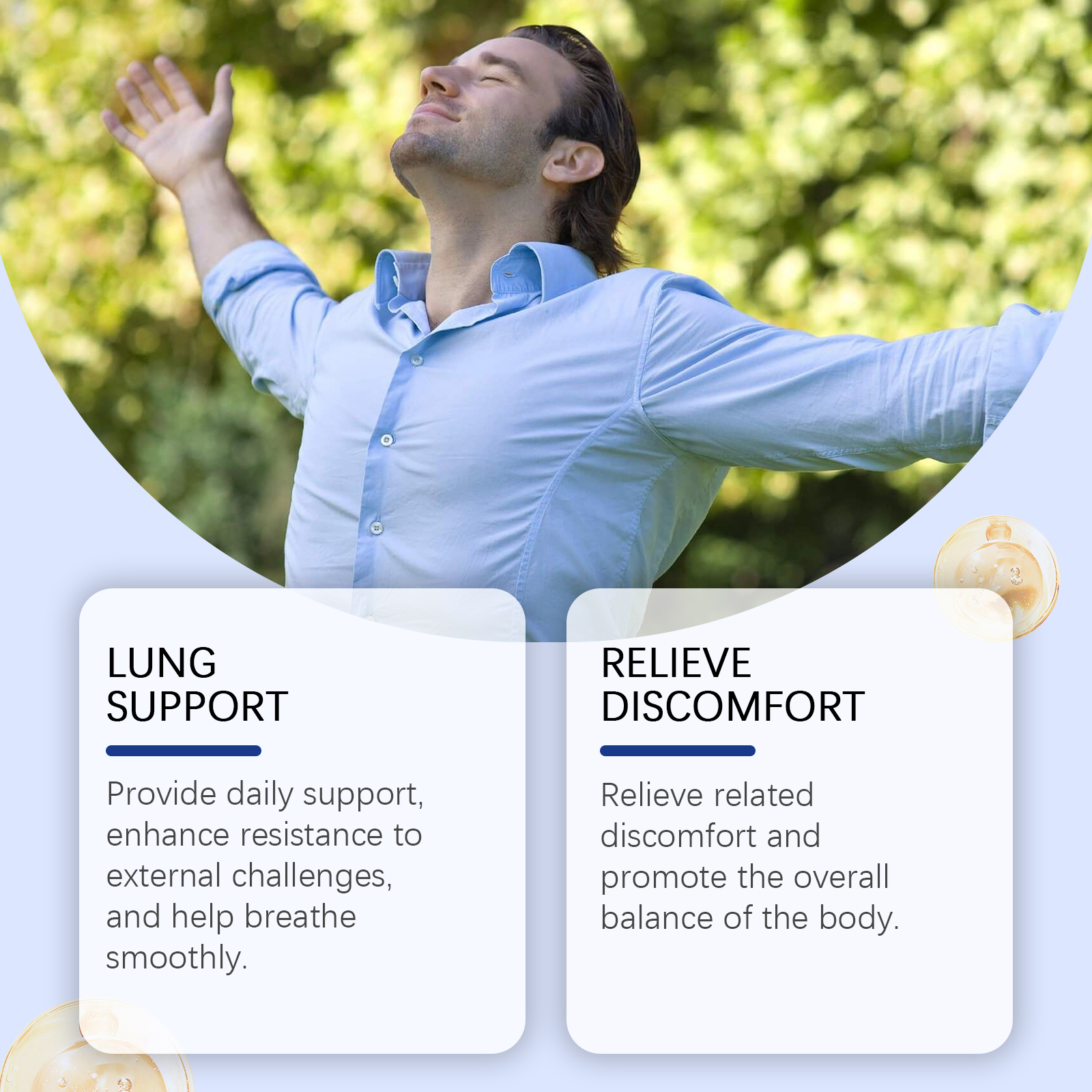 我们的肺部健康补充胶囊含有维生素C、钠、食用着色剂。它可以提供日常支持,增强对外界挑战的抵抗力,帮助呼吸顺畅。它的使用方法很简单:每天两次,每次1~2粒。并且可以缓解相关的不适,促进身体的整体平衡。