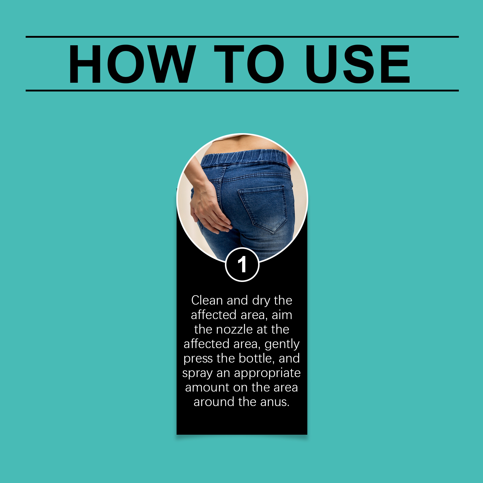 我们的痔疮预防喷剂含有薄荷脑、槐花。它可以含多种植物提取物温和滋养。易于使用,随时随地关心。它的使用方法很简单:清洁并干燥患处将喷嘴瞄准患处轻按瓶子,在肛门周围区域喷洒适量。并且可以日常预防痔疮和保护肛门健康。