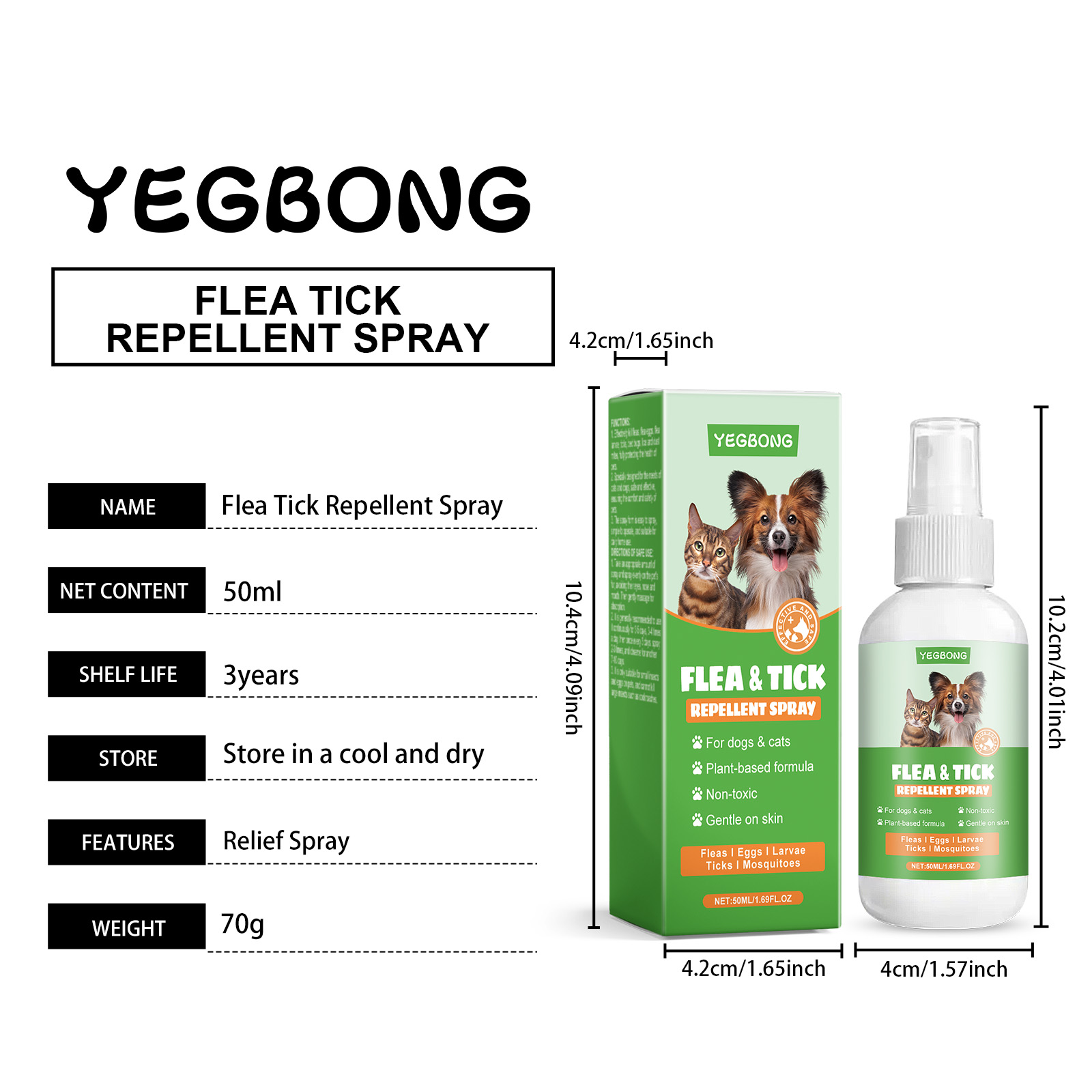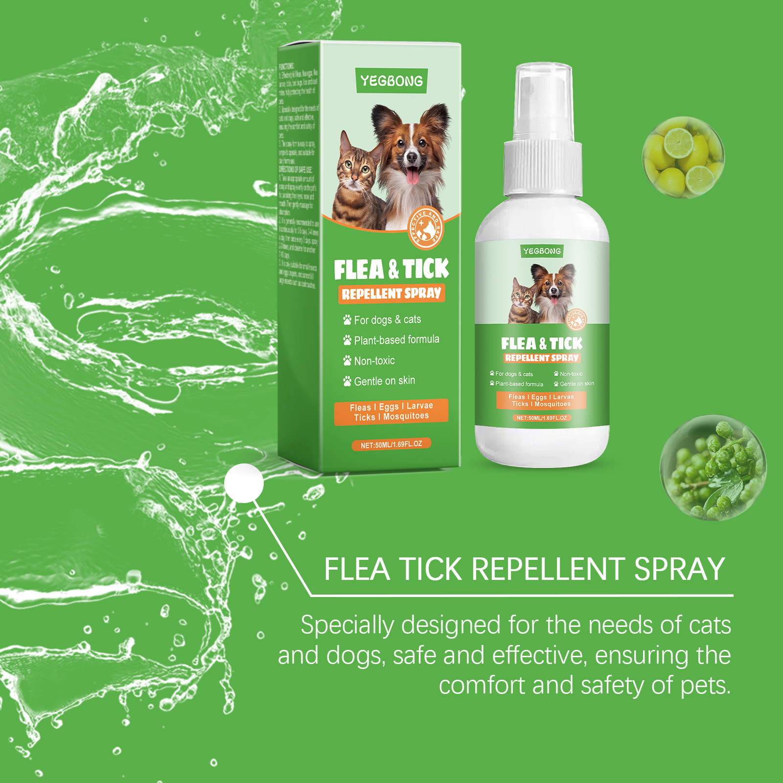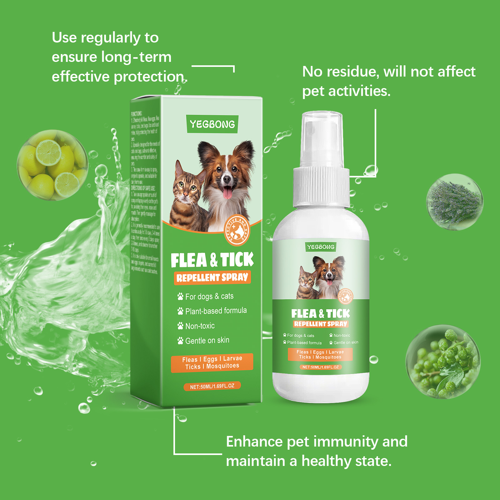 Yegbong Pet External Insect Repellent Spray, Gently Cleans Pet Mite Flea Fur Care Spray