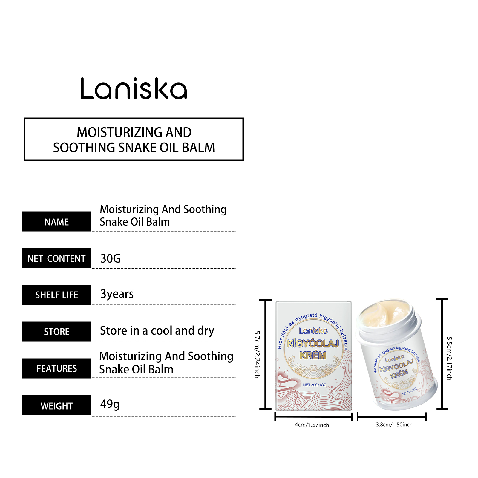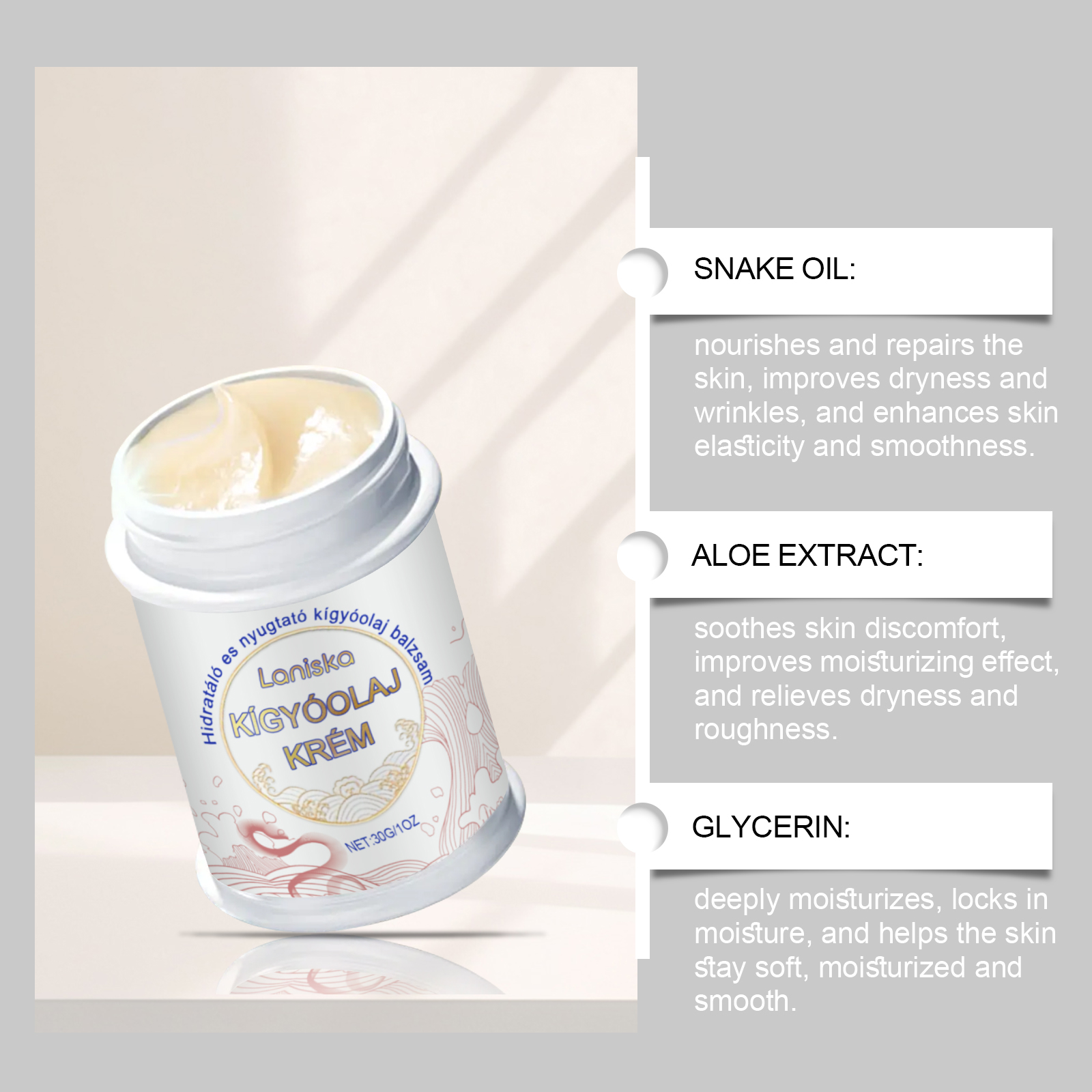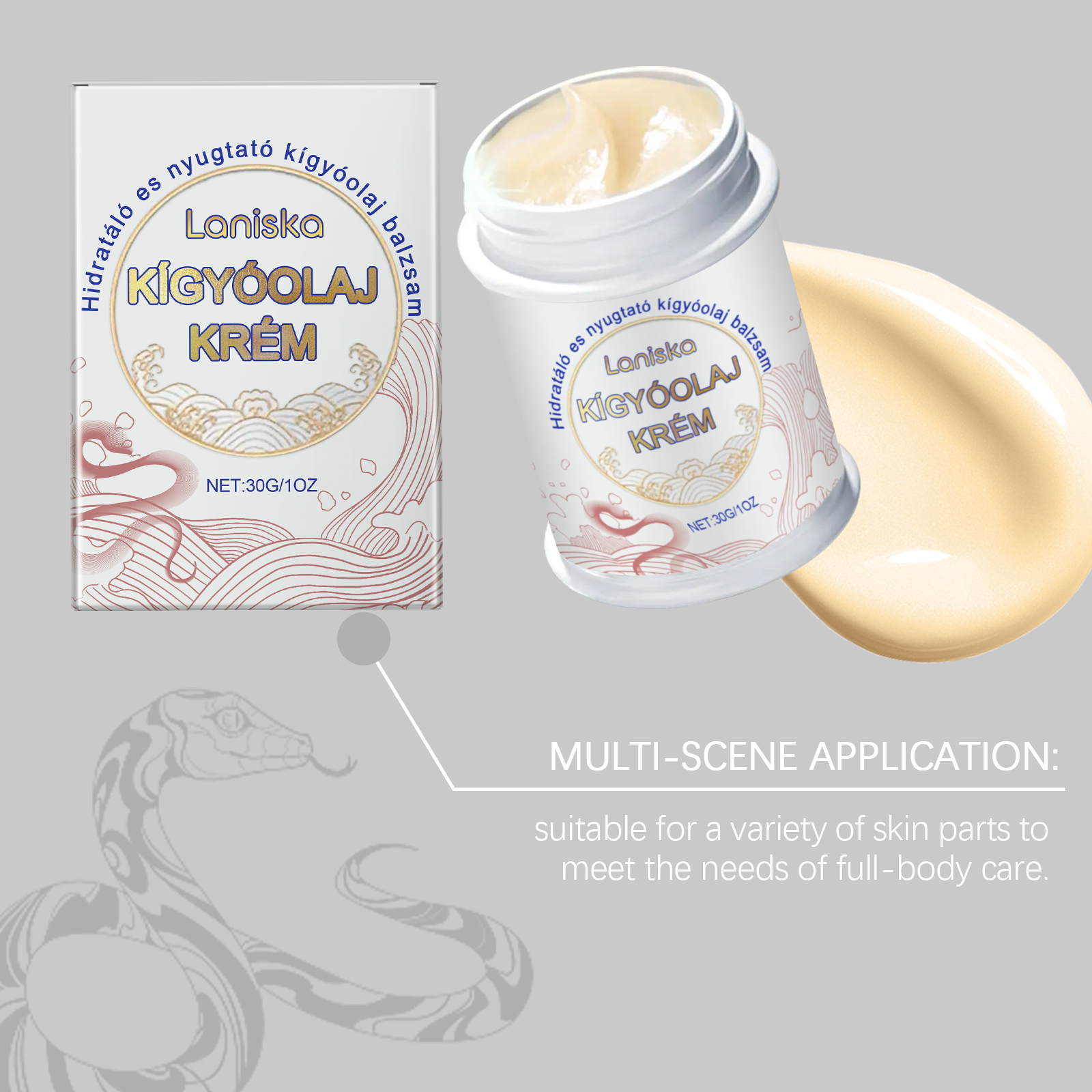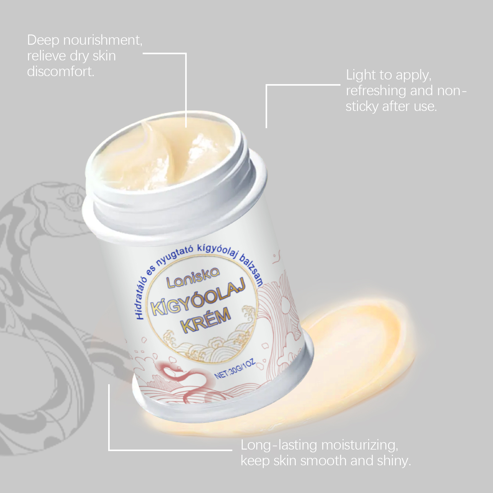 Laniska Snake Oil Skin Care Cream, To Soothe Dry Skin Smooth Elastic Nourishing Moisture Lock Massage Cream