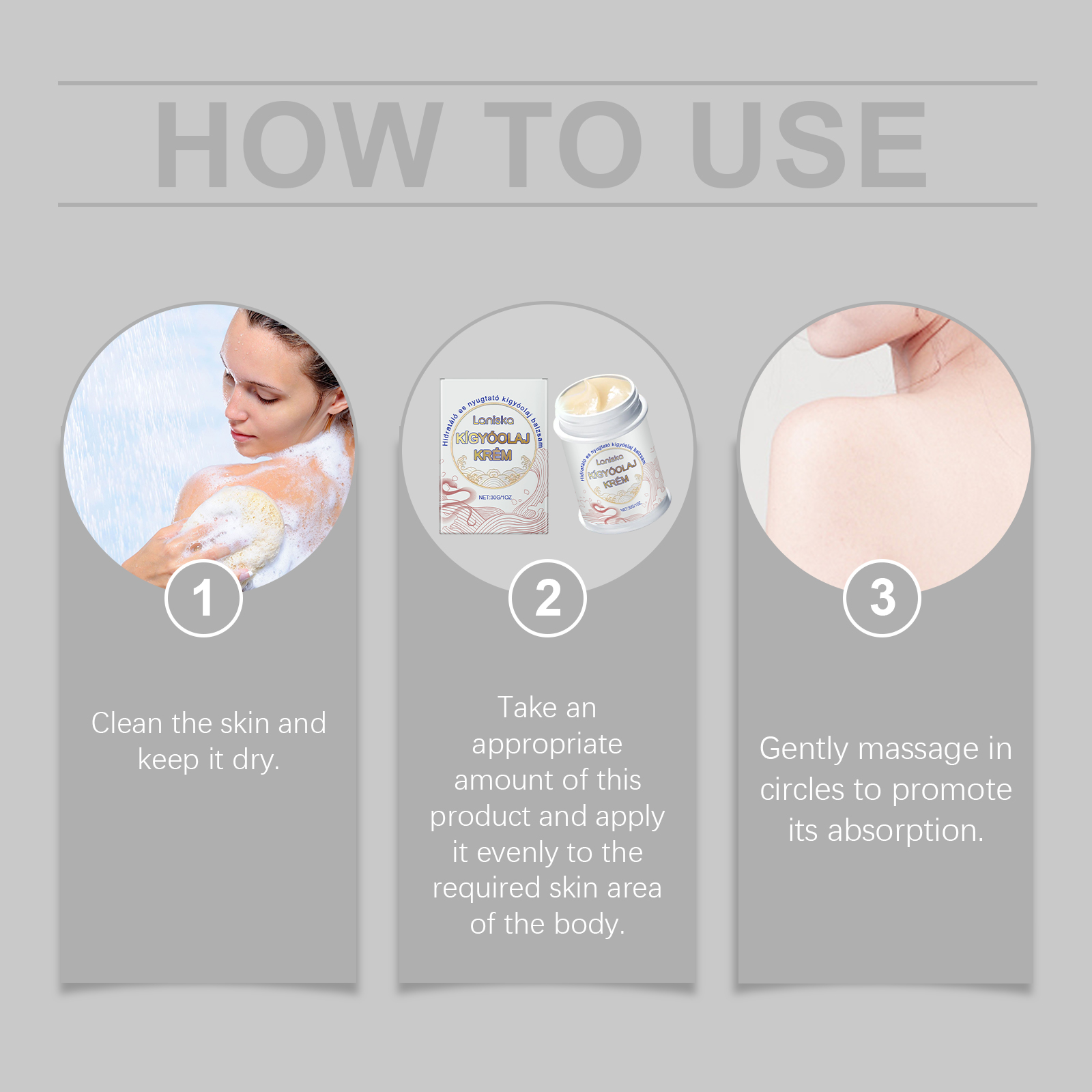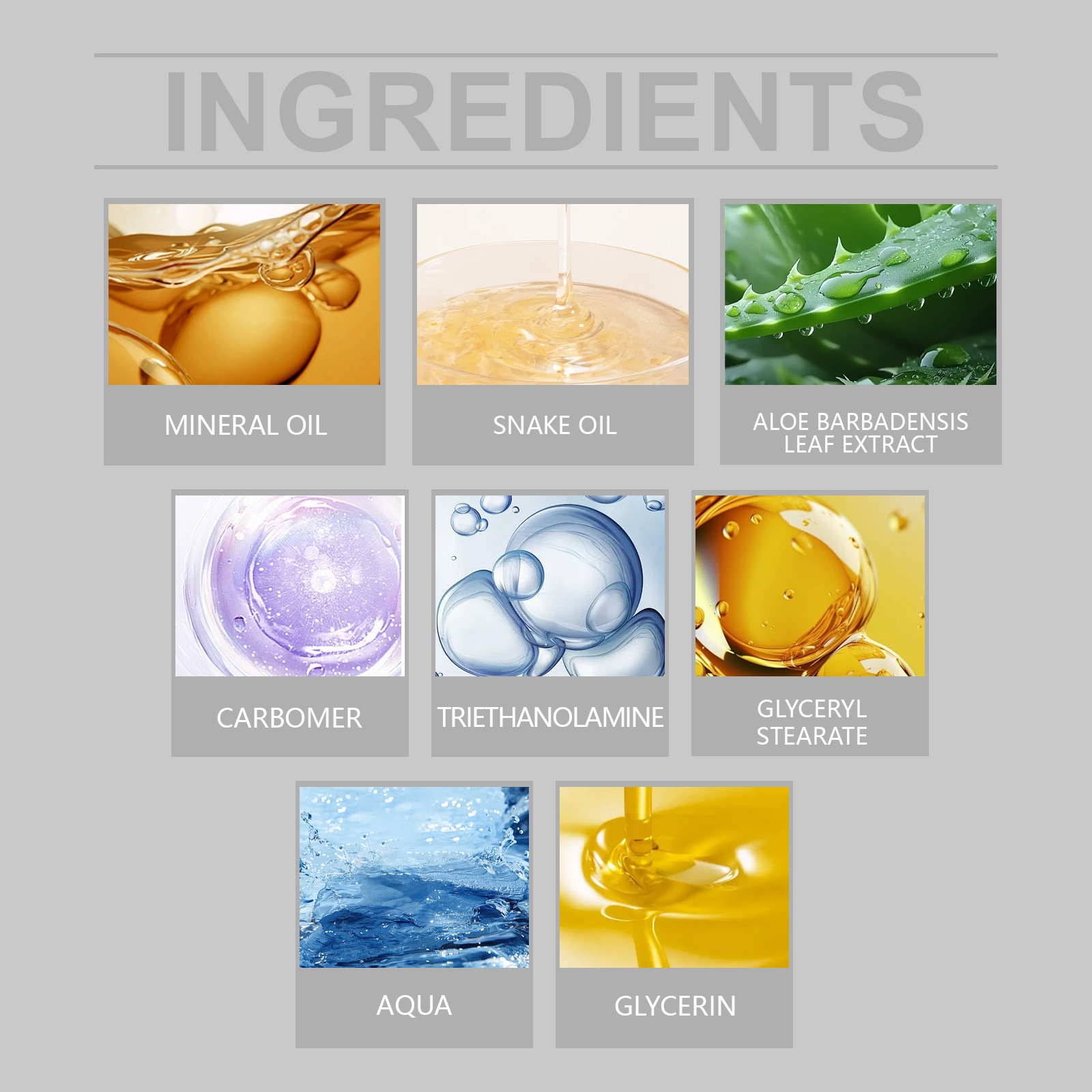 我们的蛇油护肤霜含有甘油、甘油硬脂酸酯。它可以深层滋养肌肤,帮助减少细纹和皱纹,并恢复肌肤的光滑触感。温和修护干燥和裂缝区域,滋润肌肤表面,缓解干燥引起的不适。它的使用方法很简单:清洁皮肤并保持干燥。取适量本品均匀涂抹于身体所需的皮肤部位。轻轻按摩,促进吸收。并且可以持久保湿配方有助于锁住水分,使肌肤整天保持柔软和滋润。