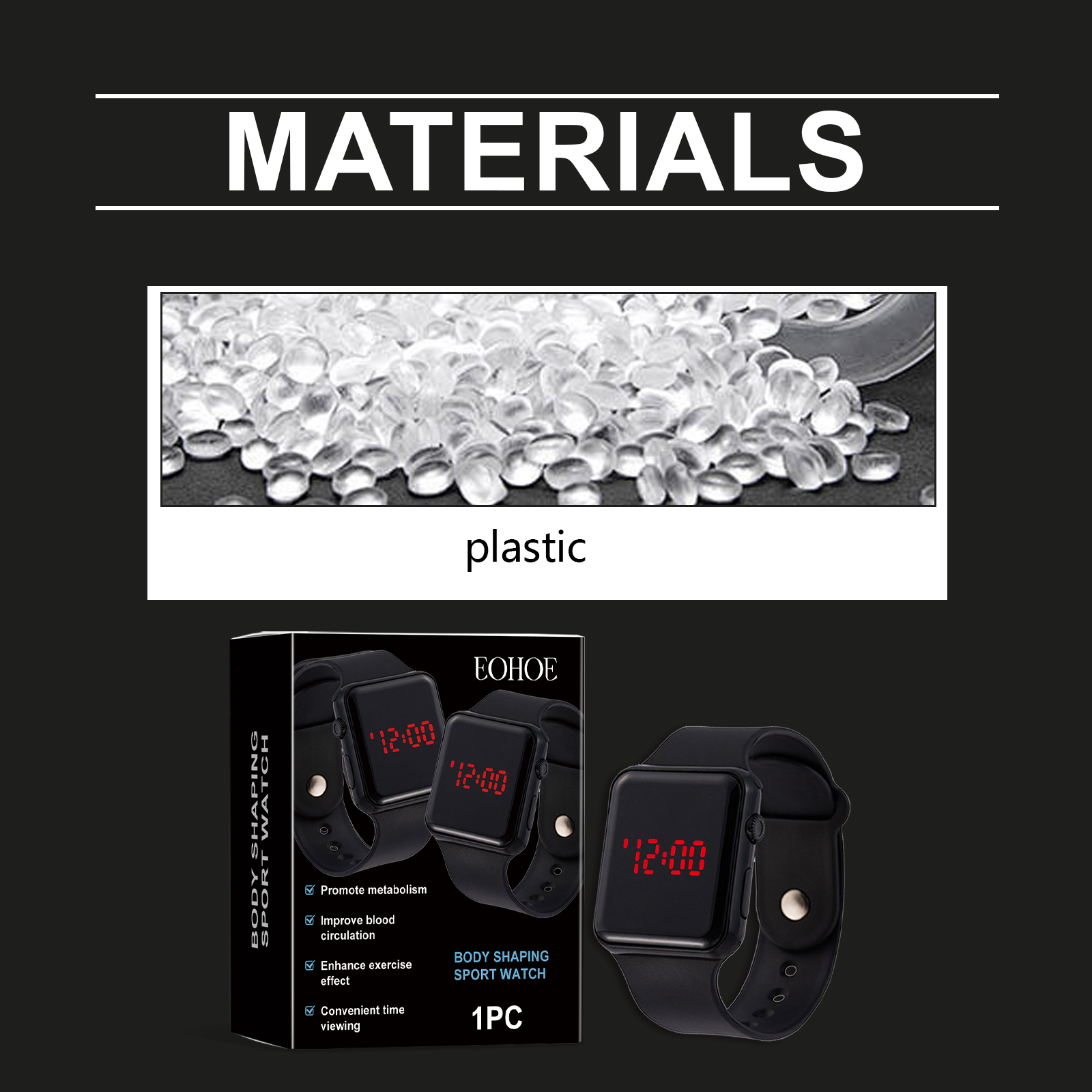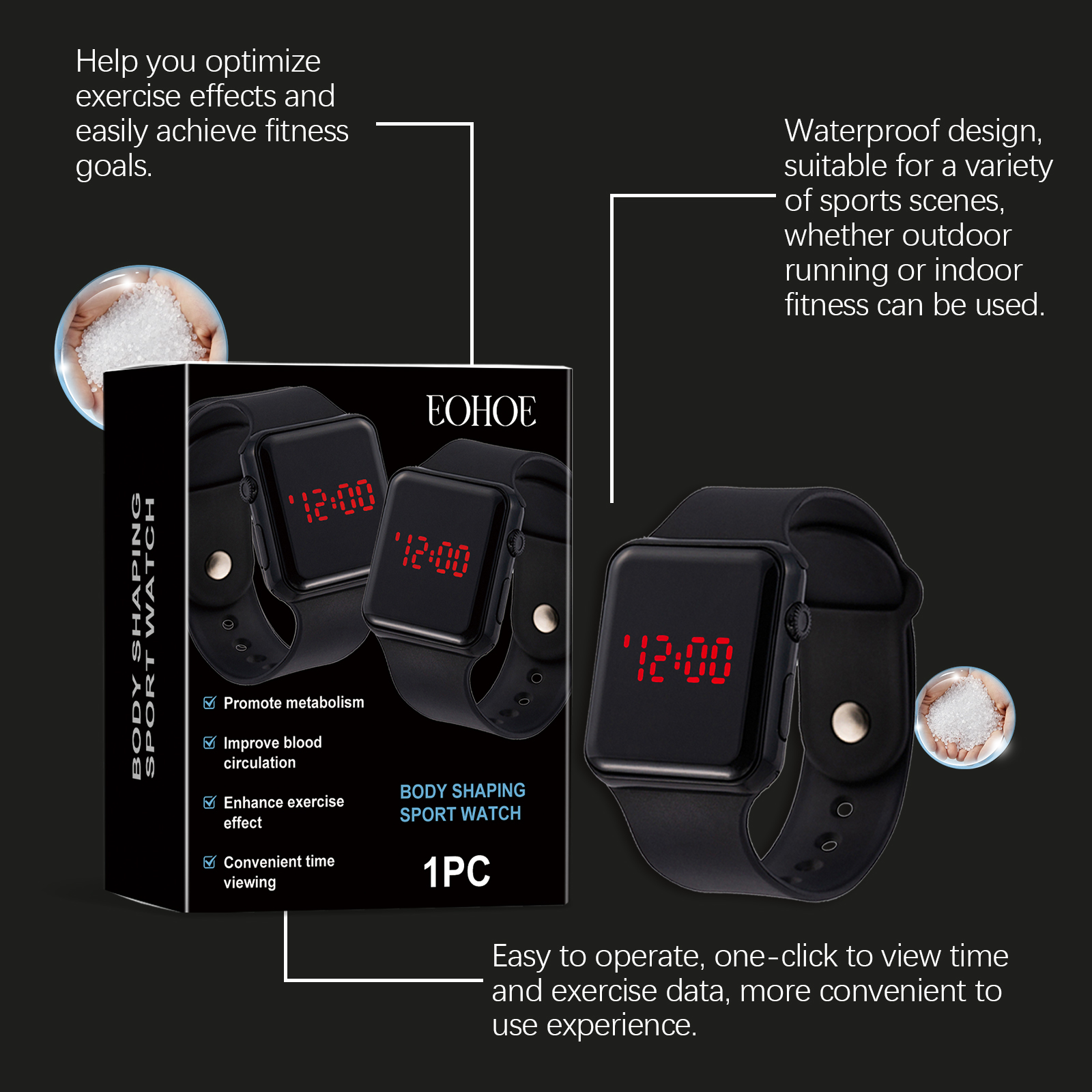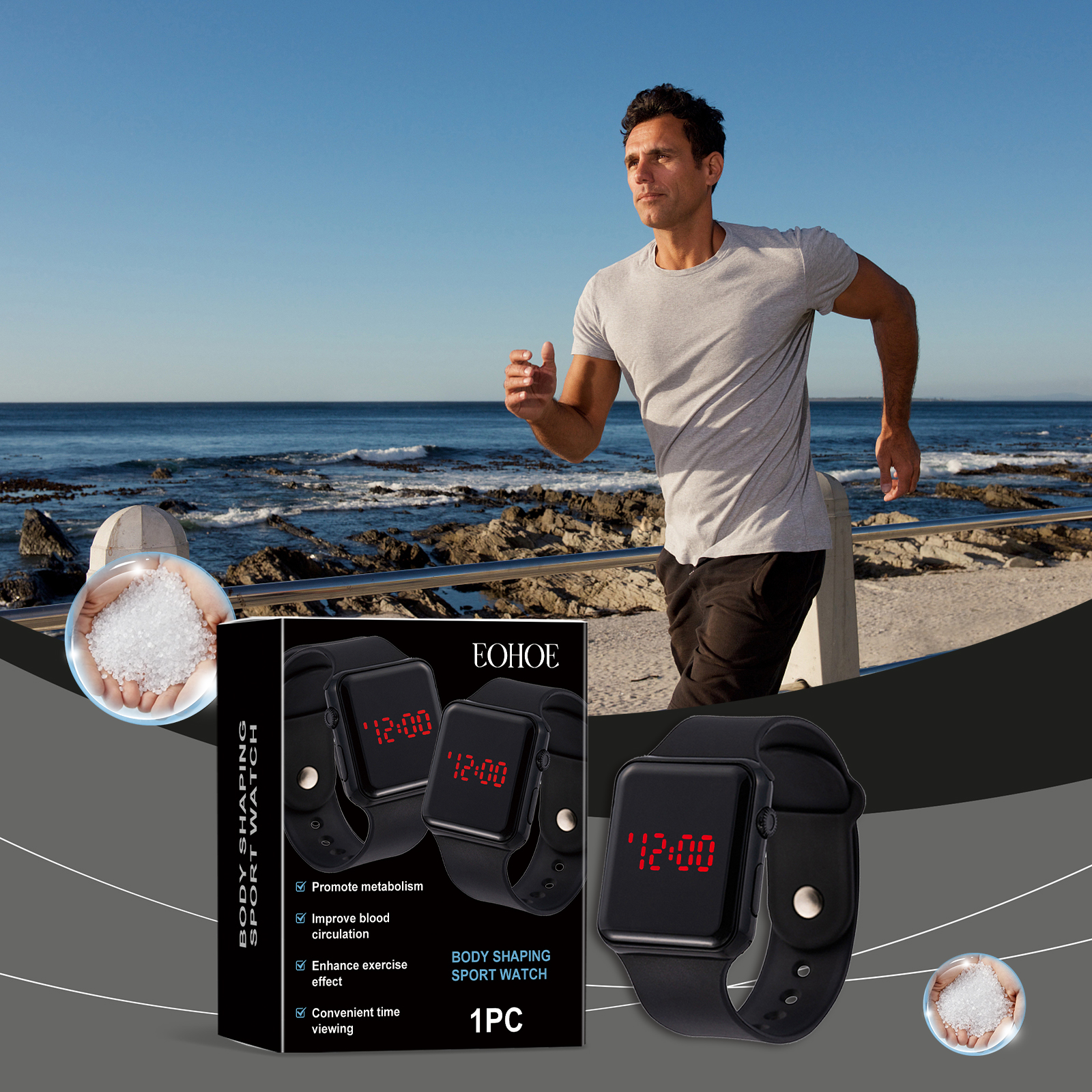 我们的塑身运动手表含有塑料,硅胶。它可以促进新陈代谢和脂肪燃烧,提高运动效果,让你轻松拥有苗条和健美的身体。它的使用方法很简单:只需将该产品直接戴在手腕上。并且可以方便地检查时间,随时跟踪进度,保持高效锻炼。