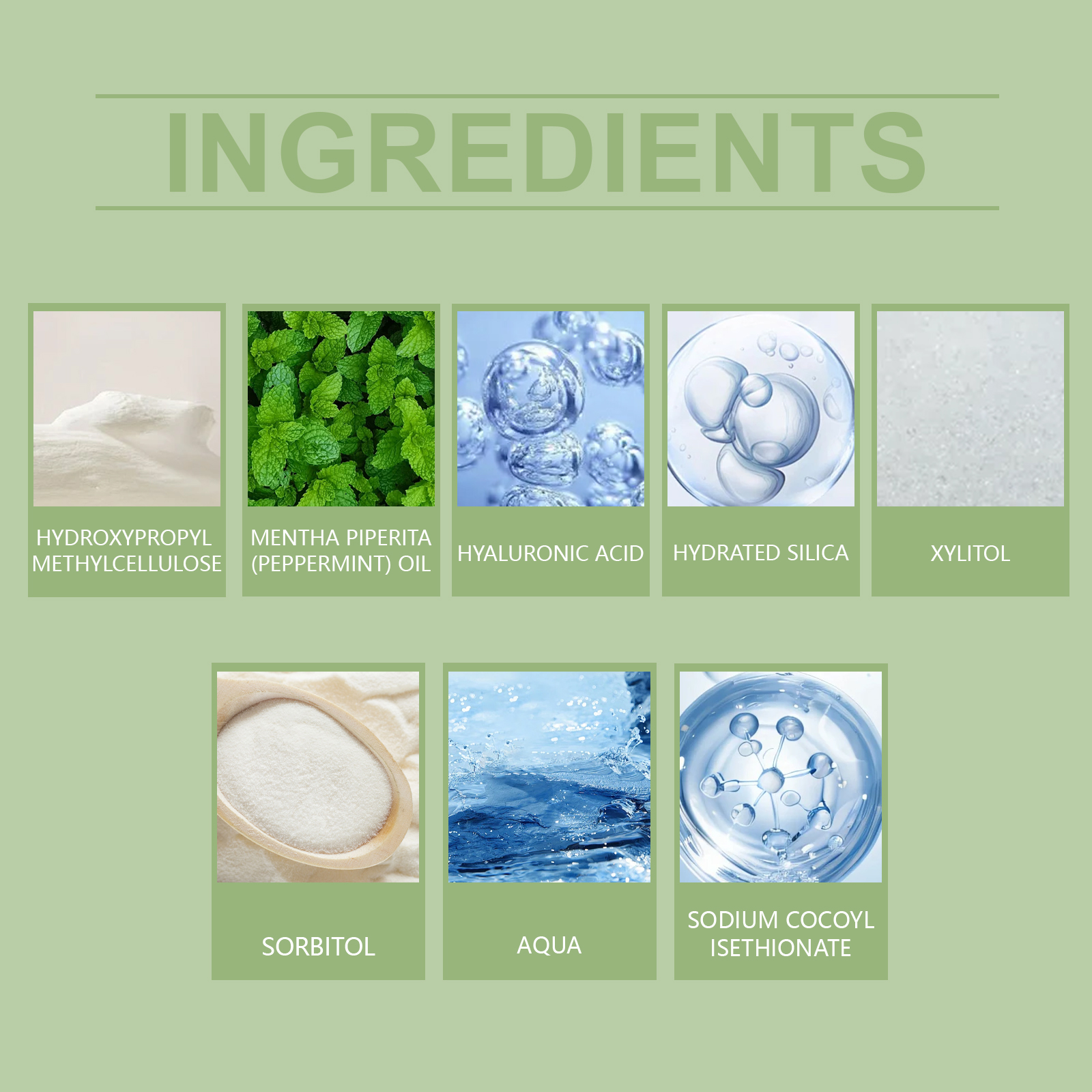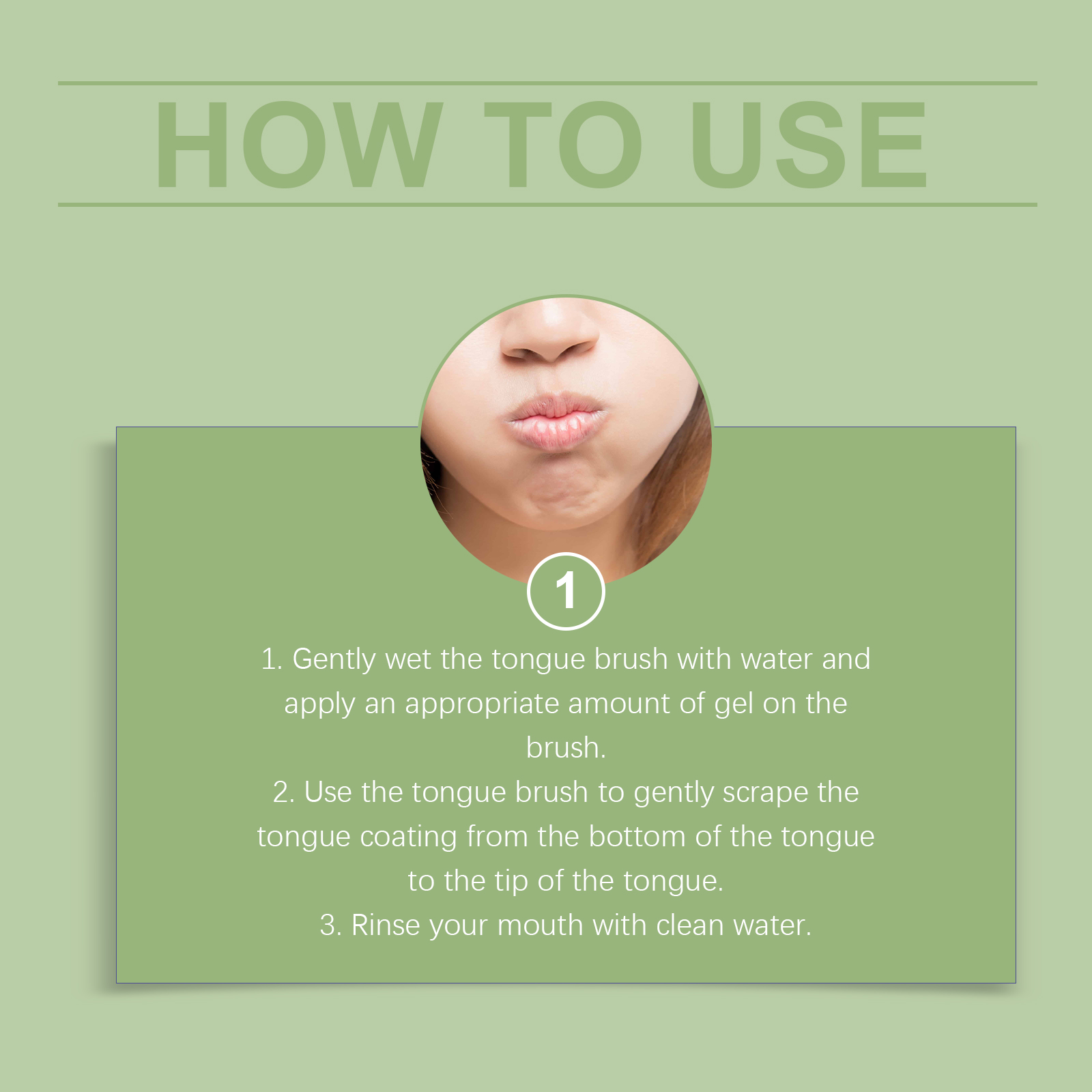 我们的口腔清洁凝胶套装含有去离子水、山梨糖醇。它可以易于入门,使用体验方便快捷。大人小孩都可以用,安全温和。持久效果,长时间保持口腔清新。它的使用方法很简单:1.用清水轻轻湿润舌刷,在刷子上涂上适量的凝胶。2.用舌刷从舌头底部到舌尖轻轻刮去舌头涂层。3.用清水漱口。并且可以在工具的帮助下易于使用。经常使用有助于保持口腔清洁。