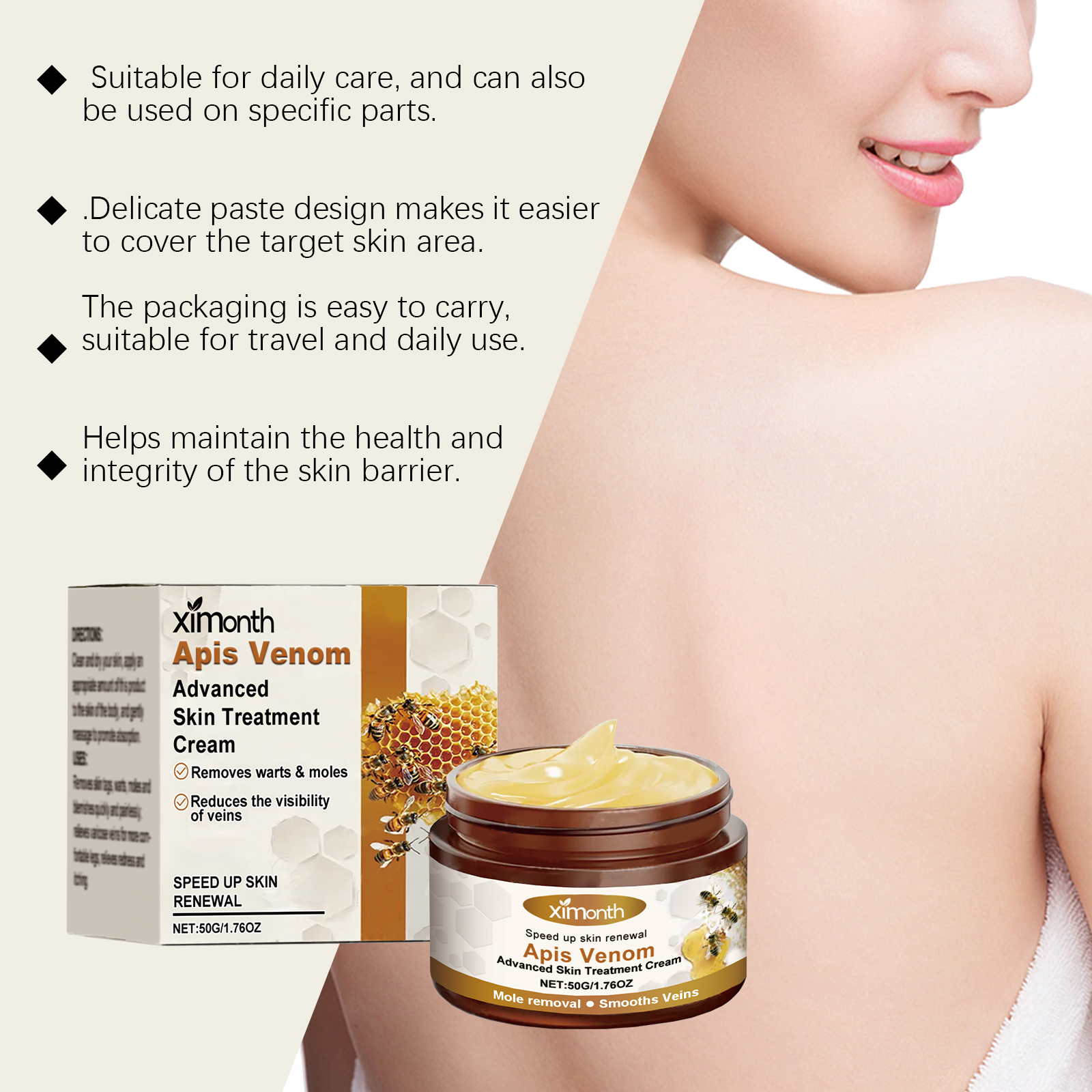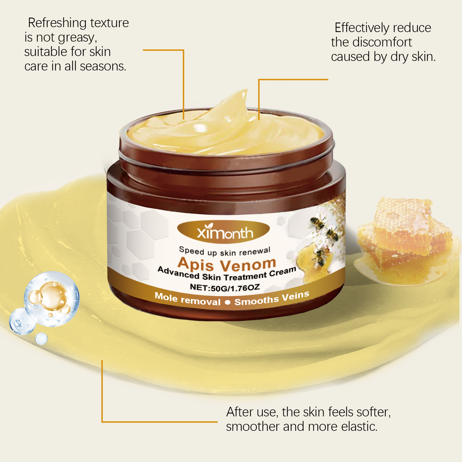 Ximonth Skin Care Cream, Bee Venom Body Skin Moisturizing Care Keyu Leg Multi-Functional Care Cream