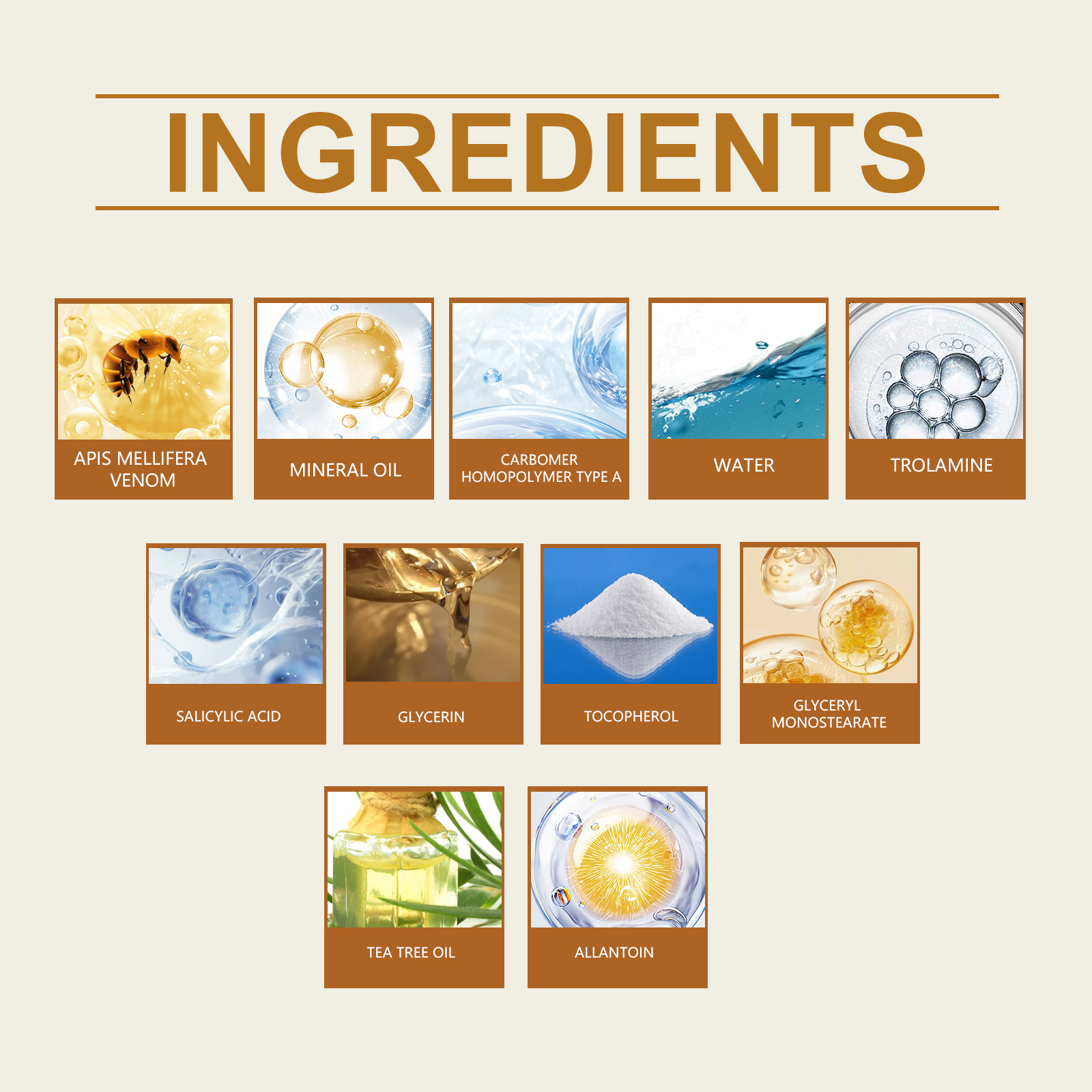 | 成分 | 蜂毒、茶树油 |