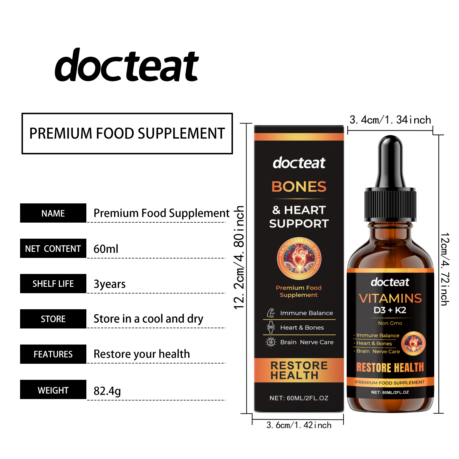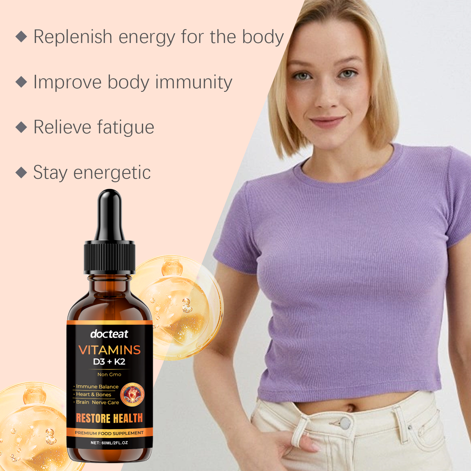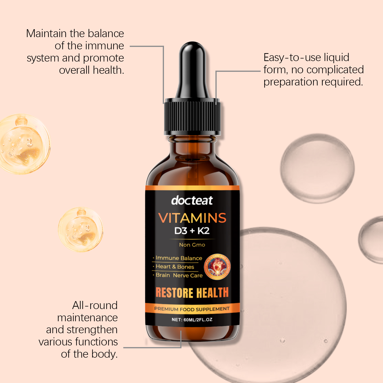Docteat Body Care Supplement Drops, Gentle Formula Pamper Body Moisturizing Supplement Drops