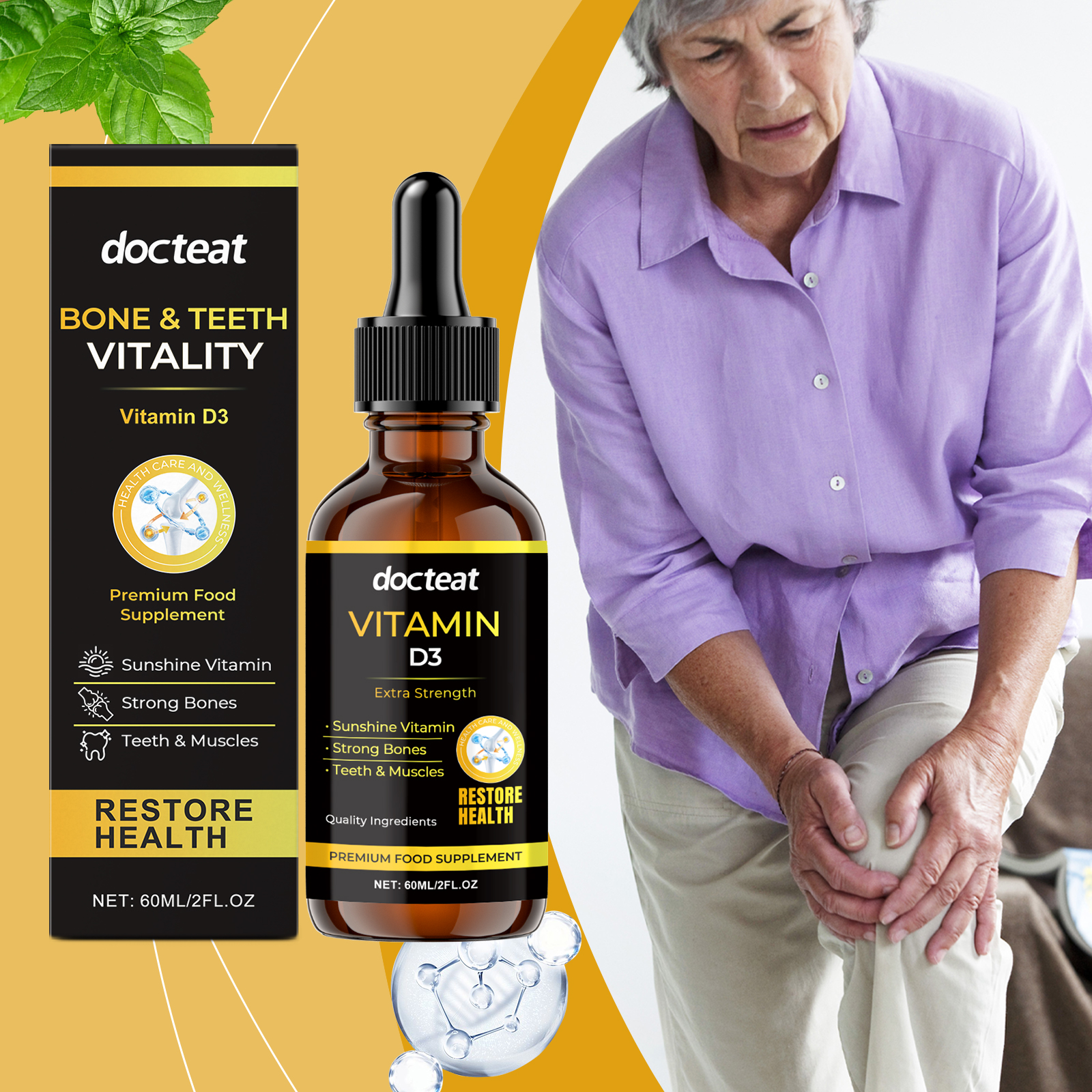 Docteat Bone Strengthening Supplement Drops, Massage Nourishing Body Leg Joint Comfort Care Supplement Drops