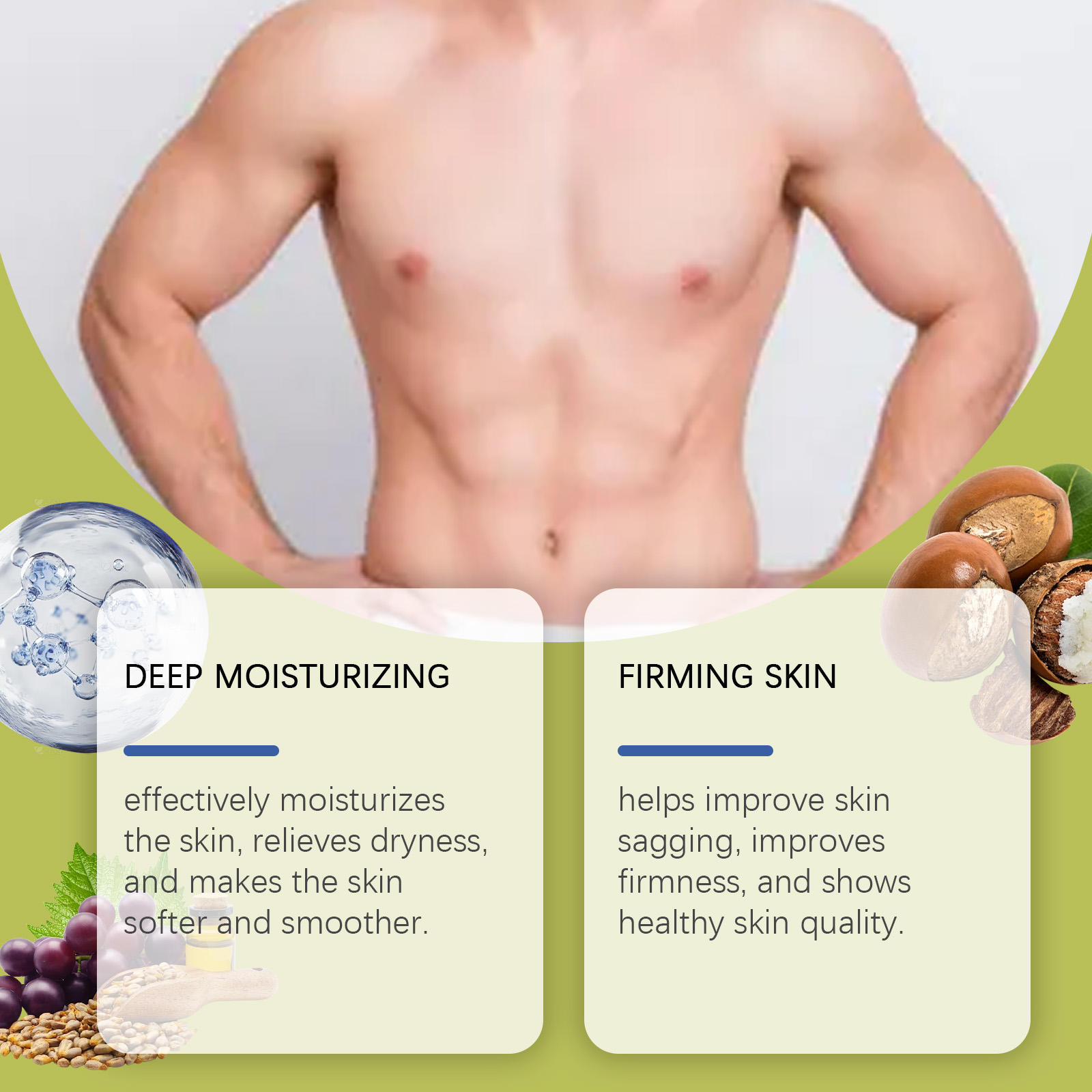 我们的乳木果油男士身体乳含有三乙醇胺、葡萄籽提取物、乳木果油。它可以有效滋润肌肤,缓解肌肤干燥,令肌肤更柔软光滑。它的使用方法很简单:清洁皮肤。取适量身体乳液,均匀涂抹在手部和身体肌肤上。轻轻按摩以促进其吸收。并且可以帮助改善皮肤松弛,改善紧致度,并展现健康的皮肤质量。