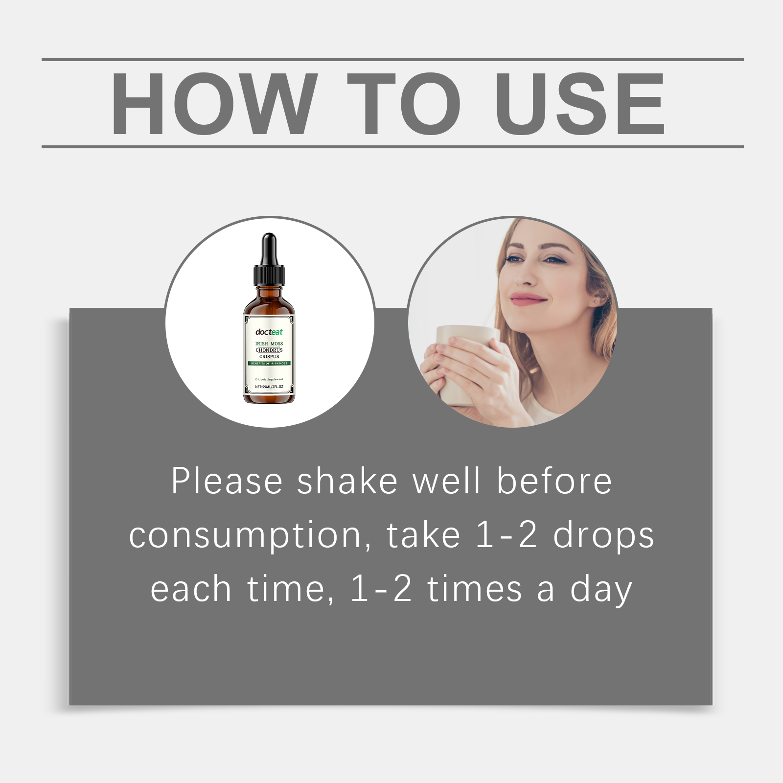 我们的苔藓膳食补充滴剂含有葡萄糖酸内脂、山梨酸钾、维生素b1。它可以促进健康循环,支持日常活力。它的使用方法很简单:食用前请先摇匀,每次1-2滴,每日1-2次。并且可以投递表格携带方便,随时随地都可以使用。