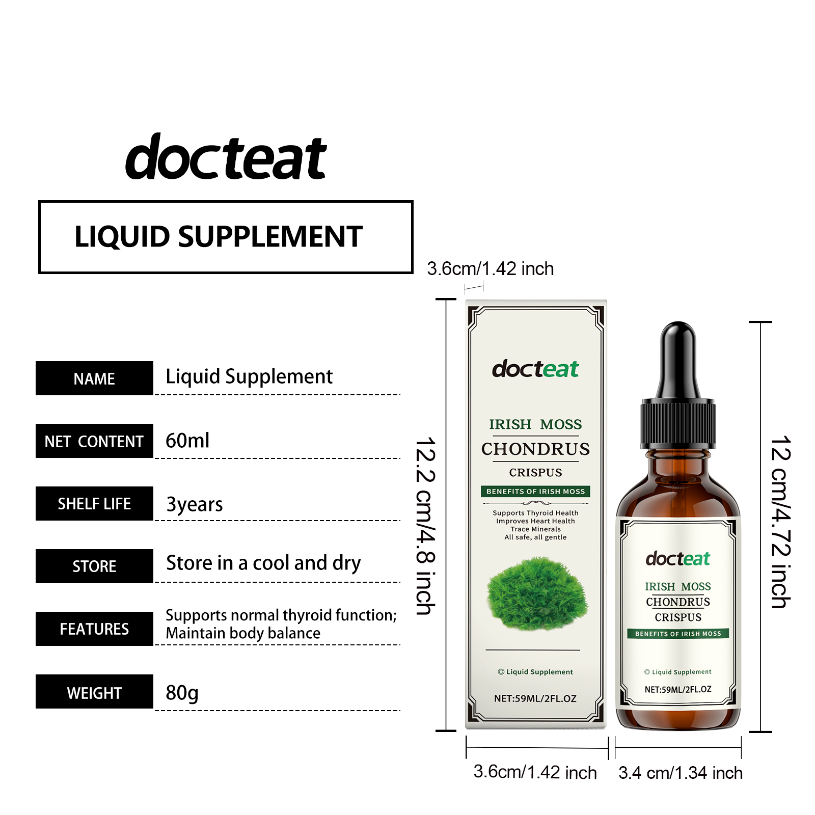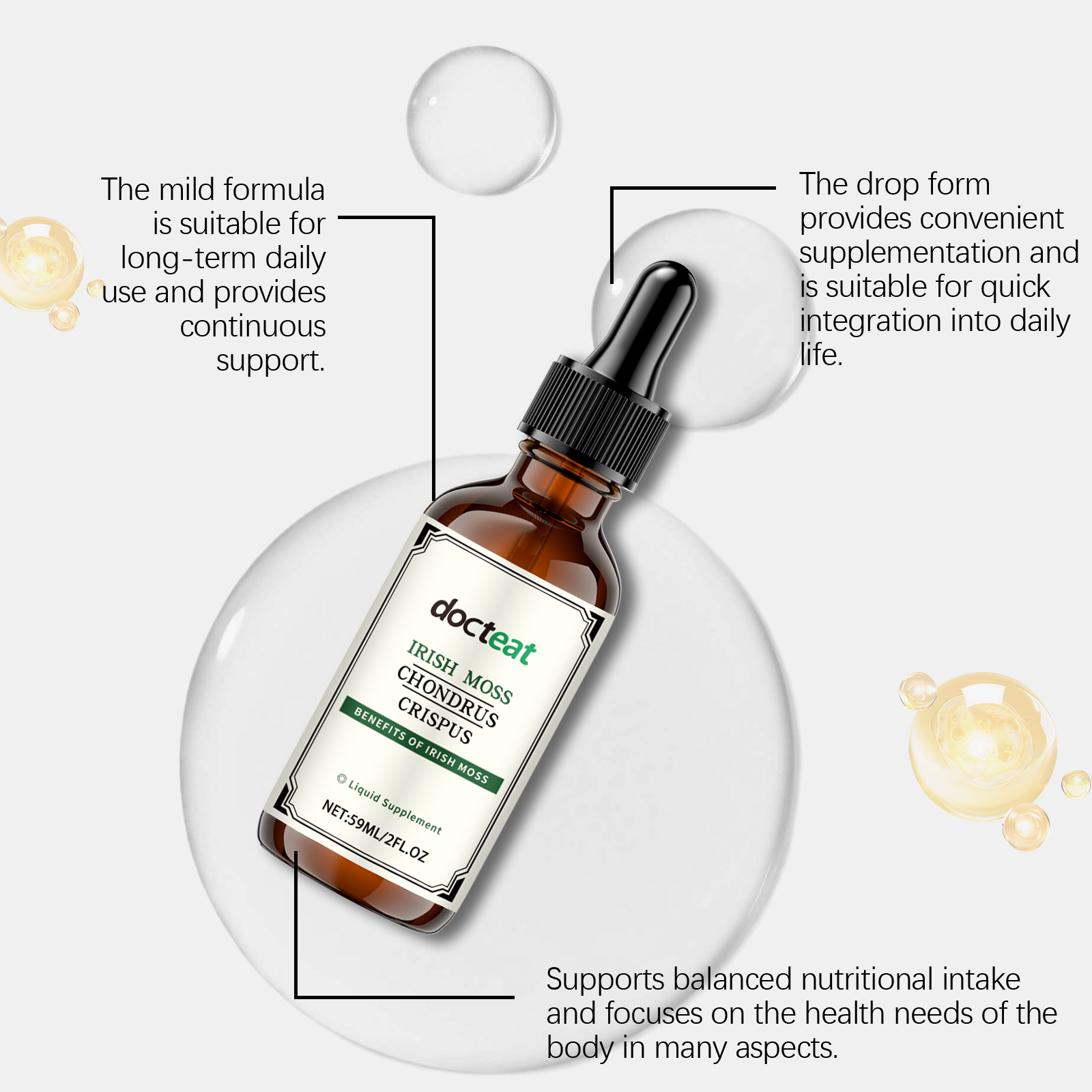 Docteat Moss Dietary Supplement Drops, Moss Dietary Fiber Gentle Formula For Daily Body Care