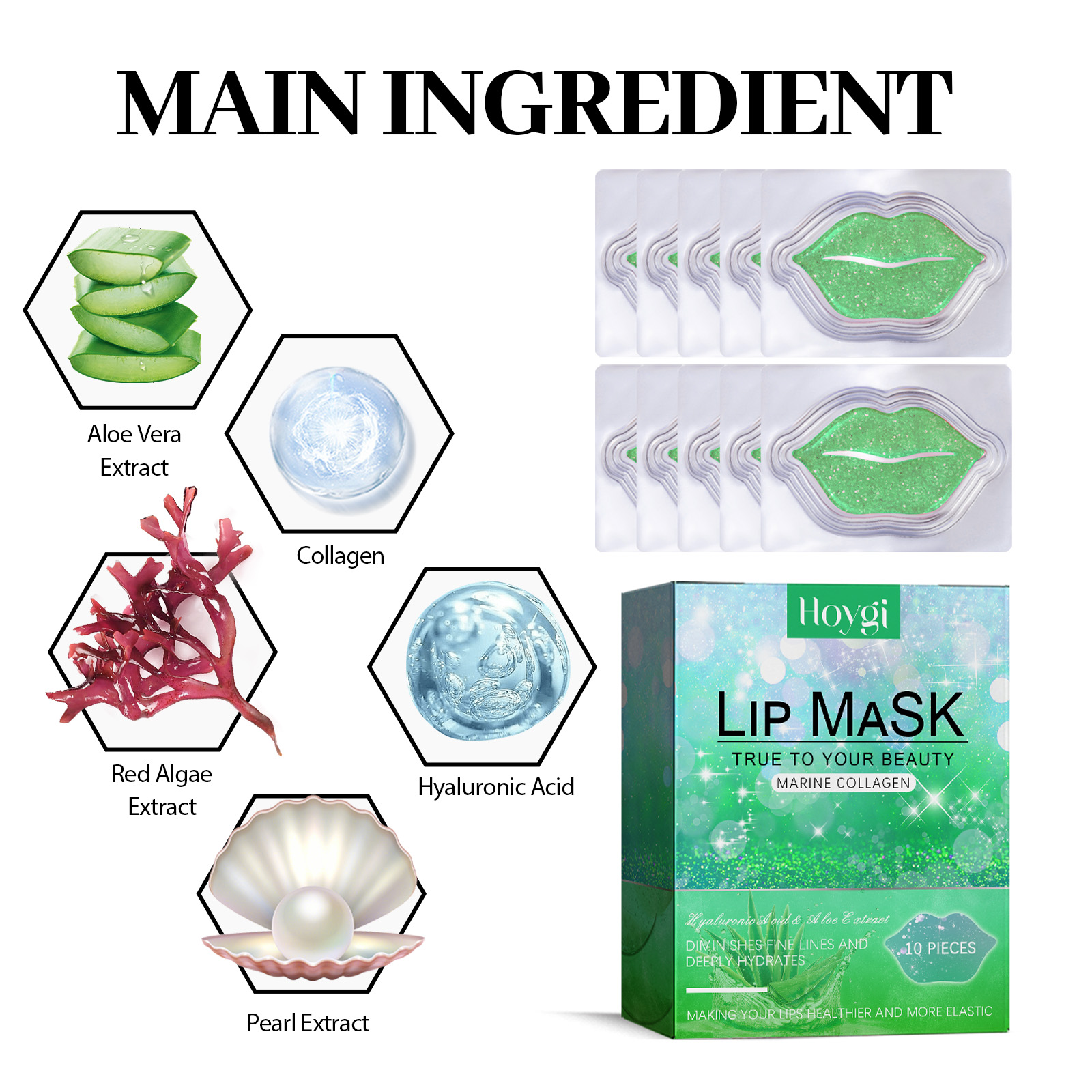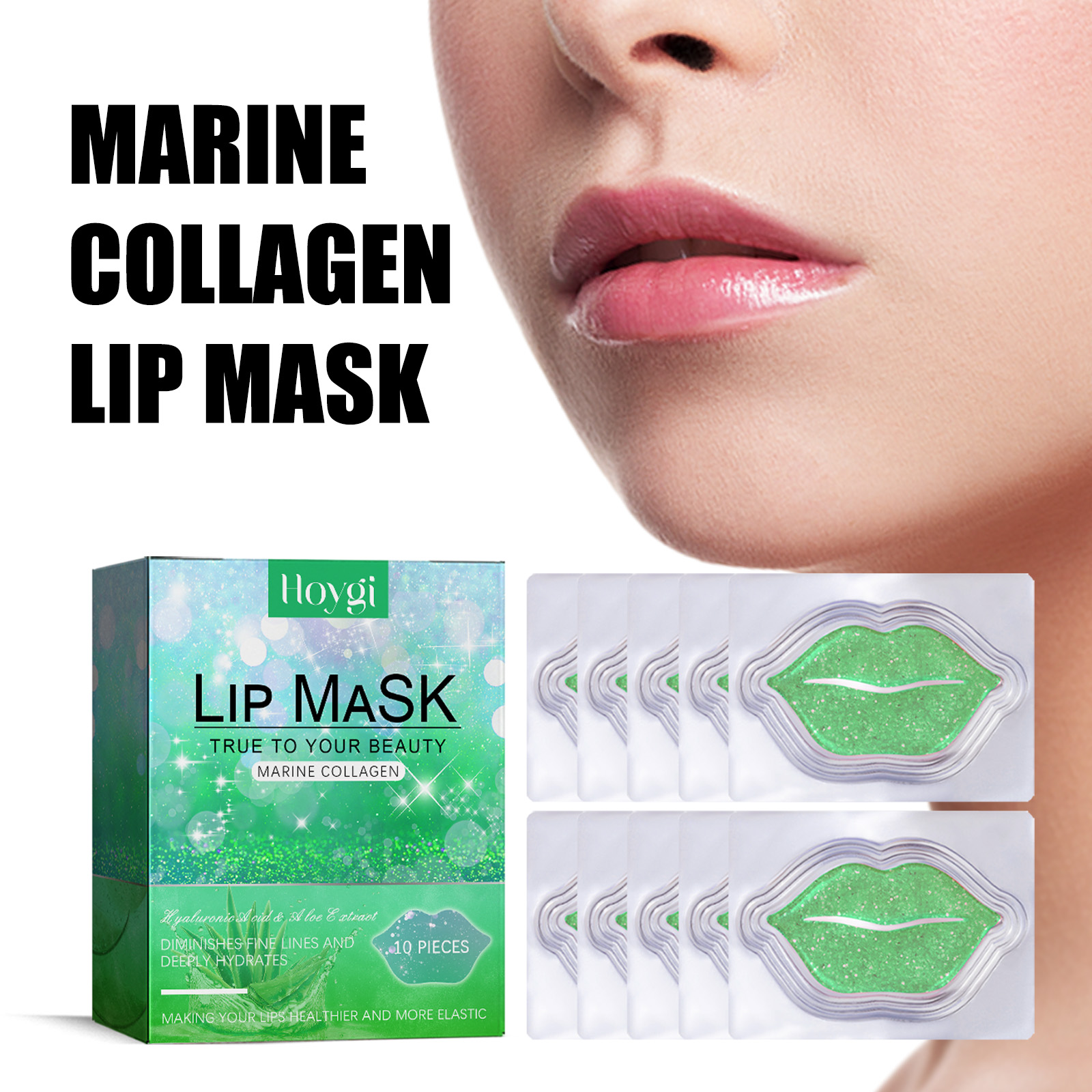 Hoygi Marine Collagen Lip Mask, Aloe Vera Moisturizing Anti-Dry Crack Autumn And Winter Moisturizing Care Light Lip Lines Remove Dead Skin Lip Mask