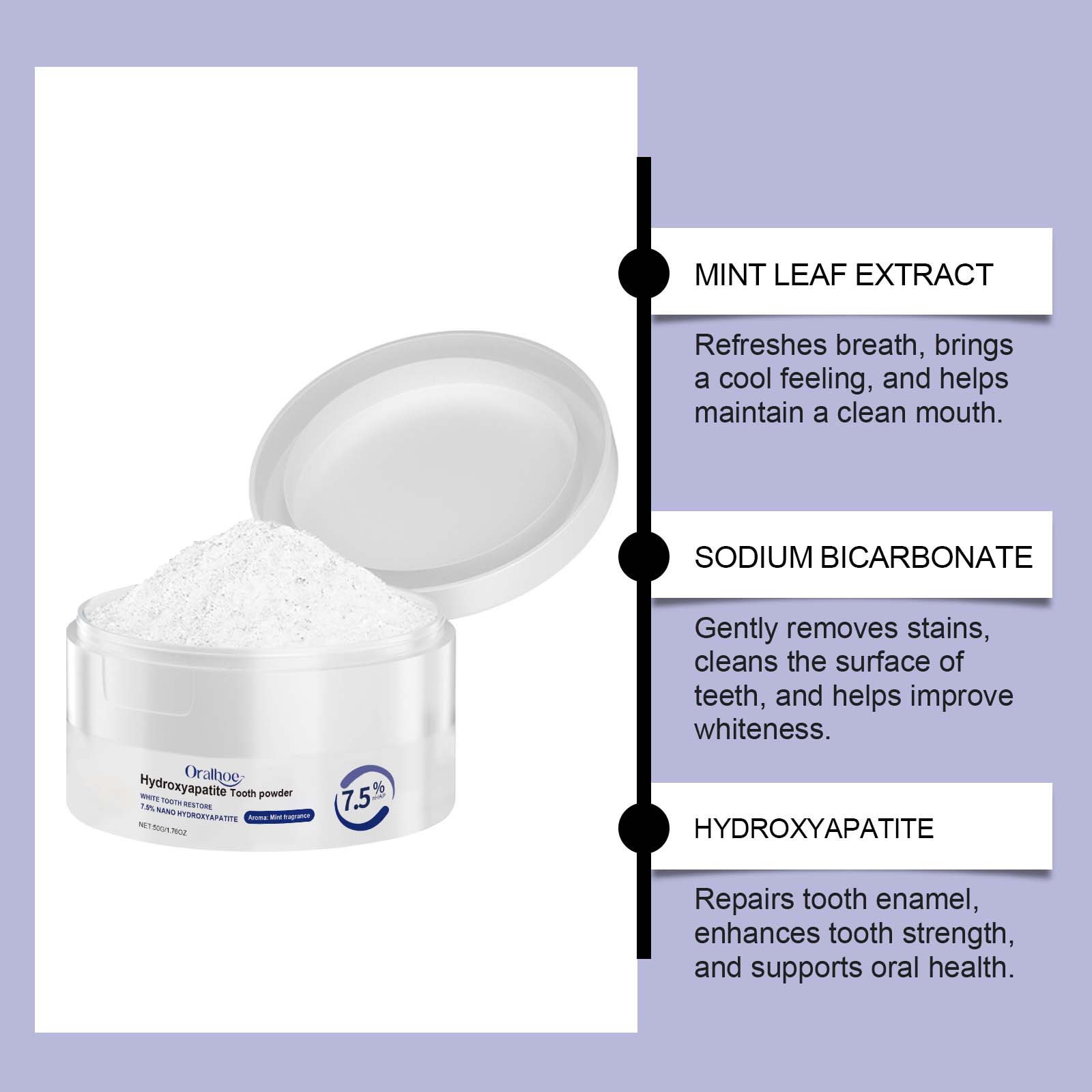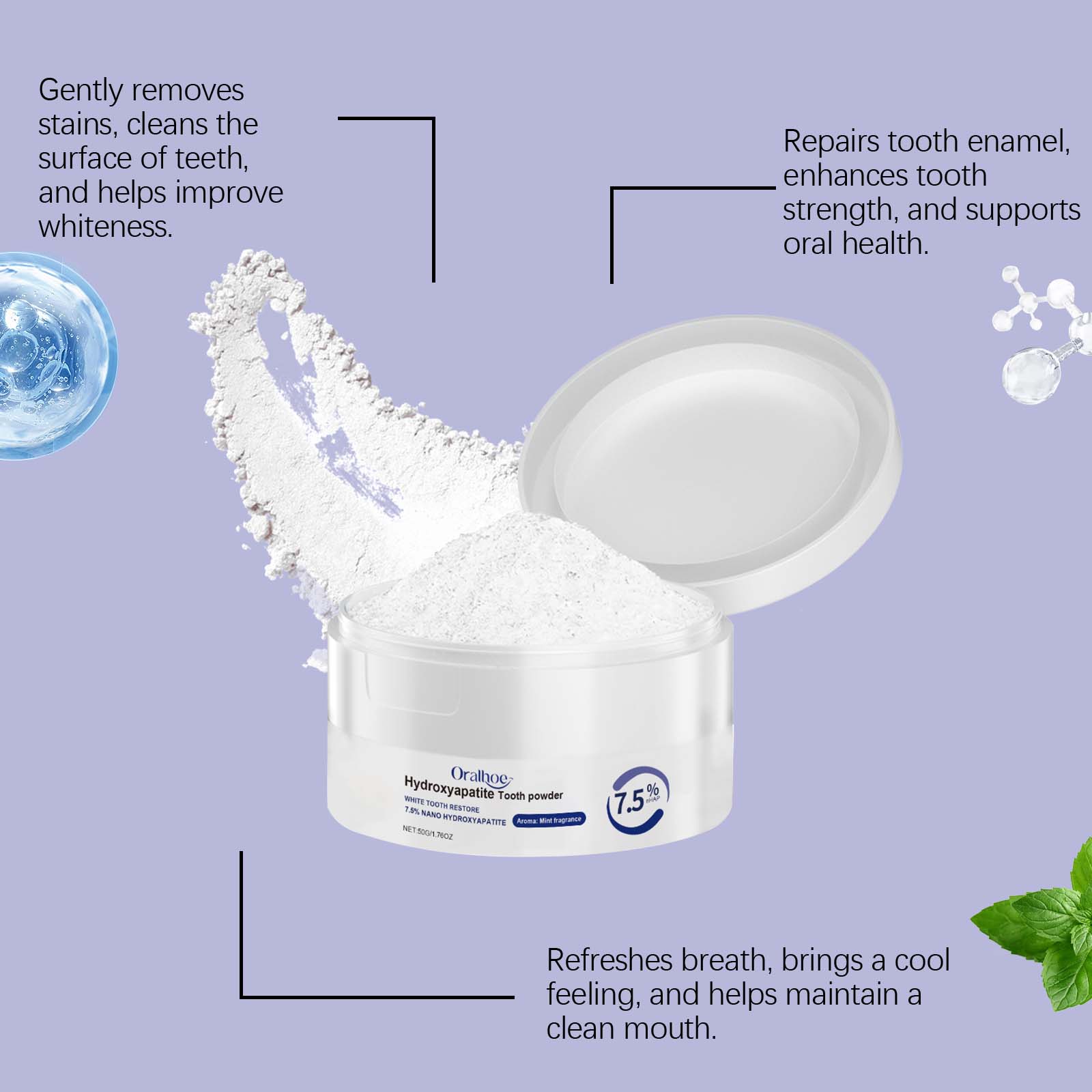 Oralhoe Dental Care Dental Powder, Gently Cleans Tooth Stains For Lasting Freshness And Protection Of Teeth