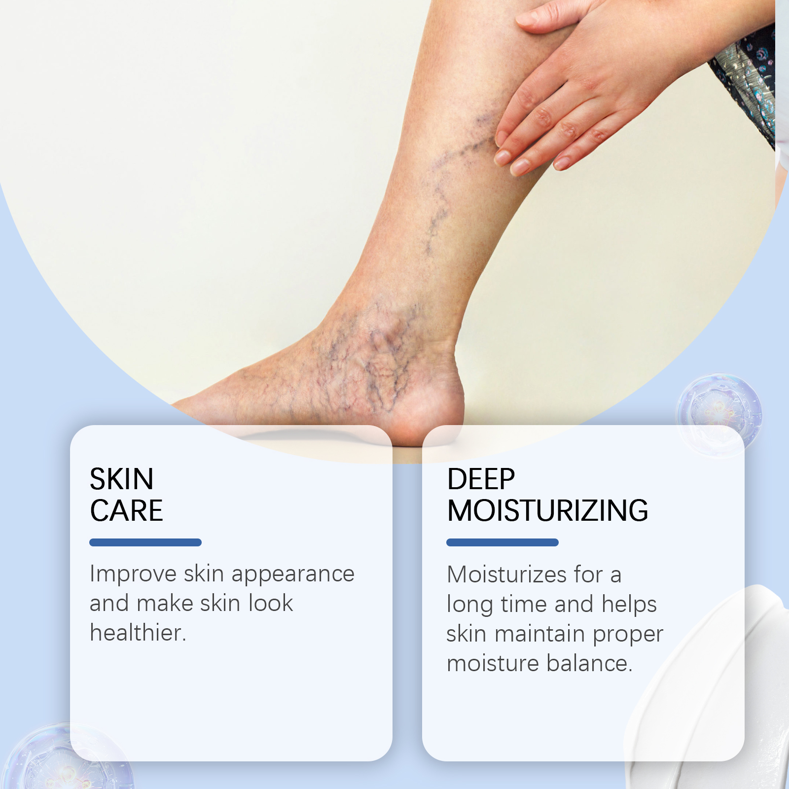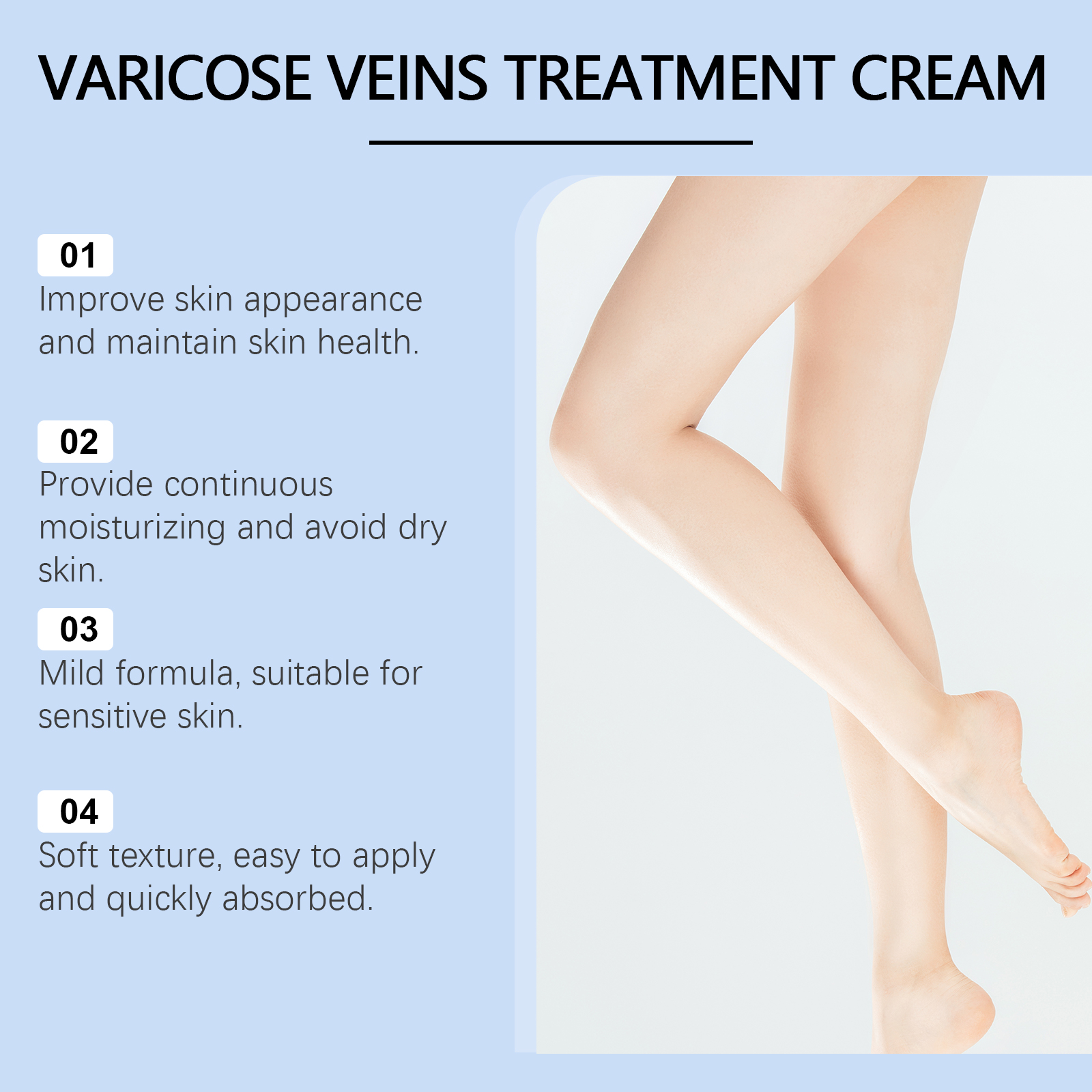我们的草本身体护理舒缓霜含有三乙醇胺、尿囊素。它可以改善肌肤外观,让肌肤看起来更健康。它的使用方法很简单:取适量本品涂抹于腿部肌肤,轻轻按摩至完全吸收。并且可以长期保湿,帮助肌肤保持适当的水分平衡。