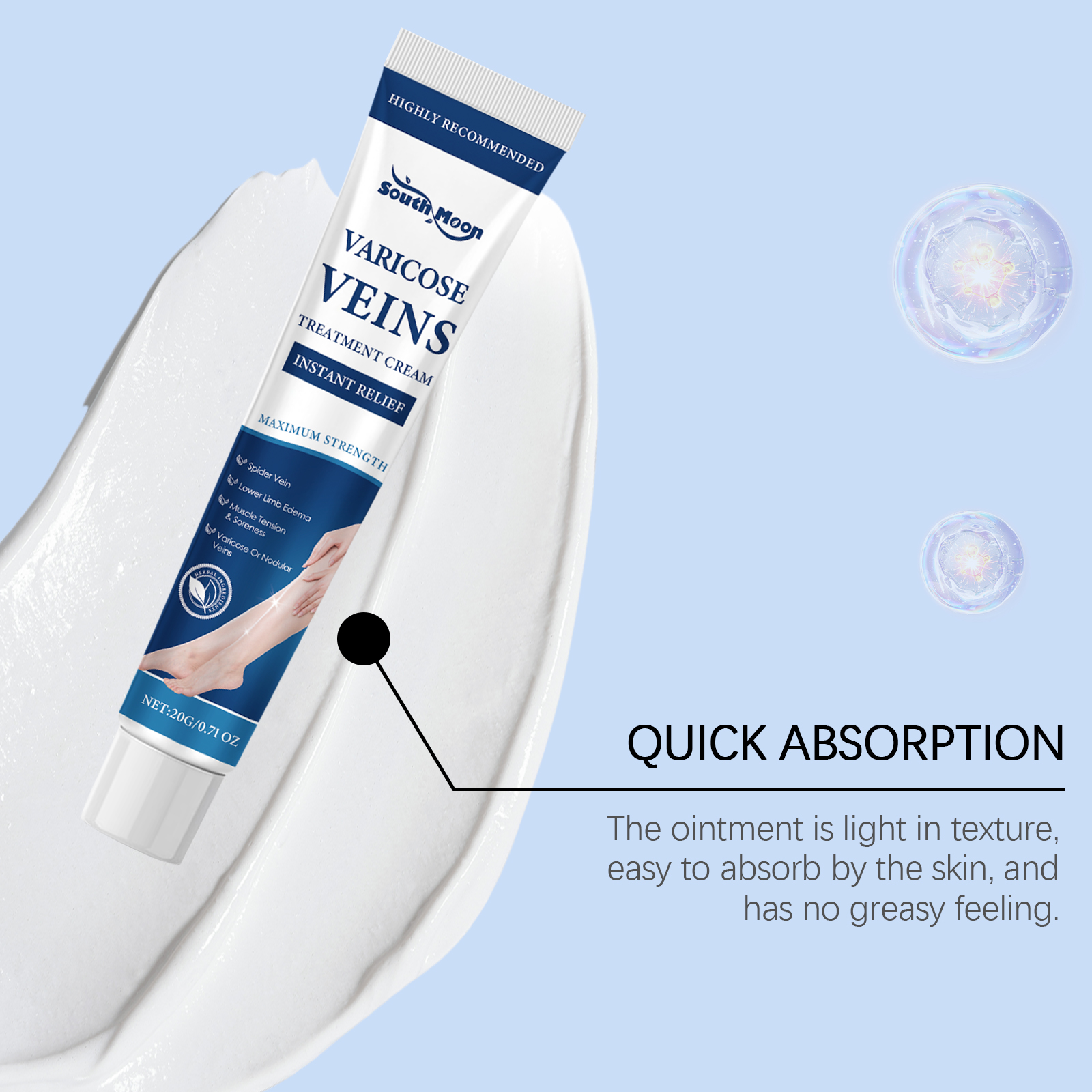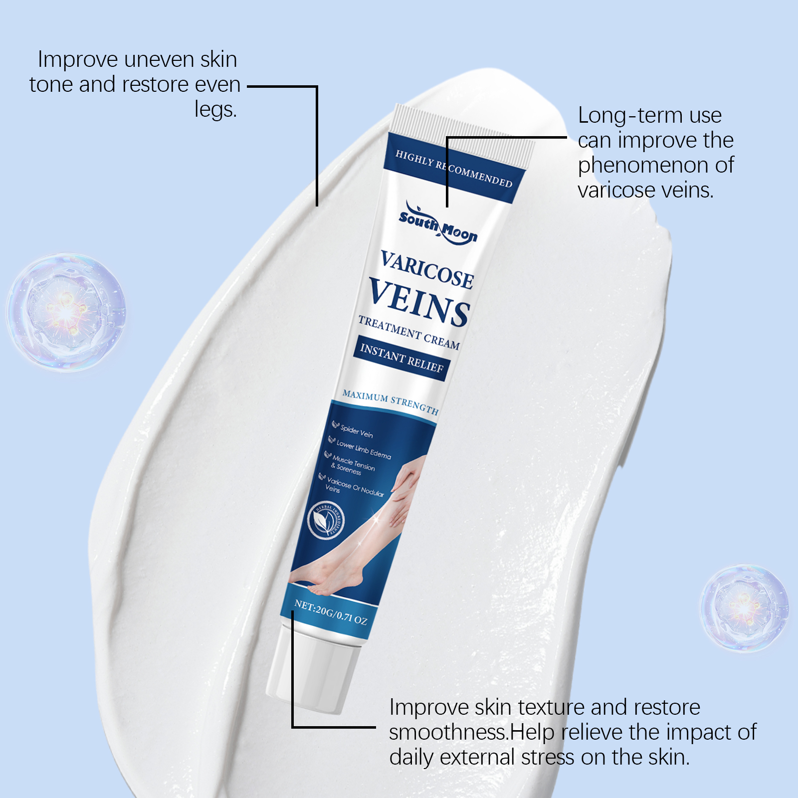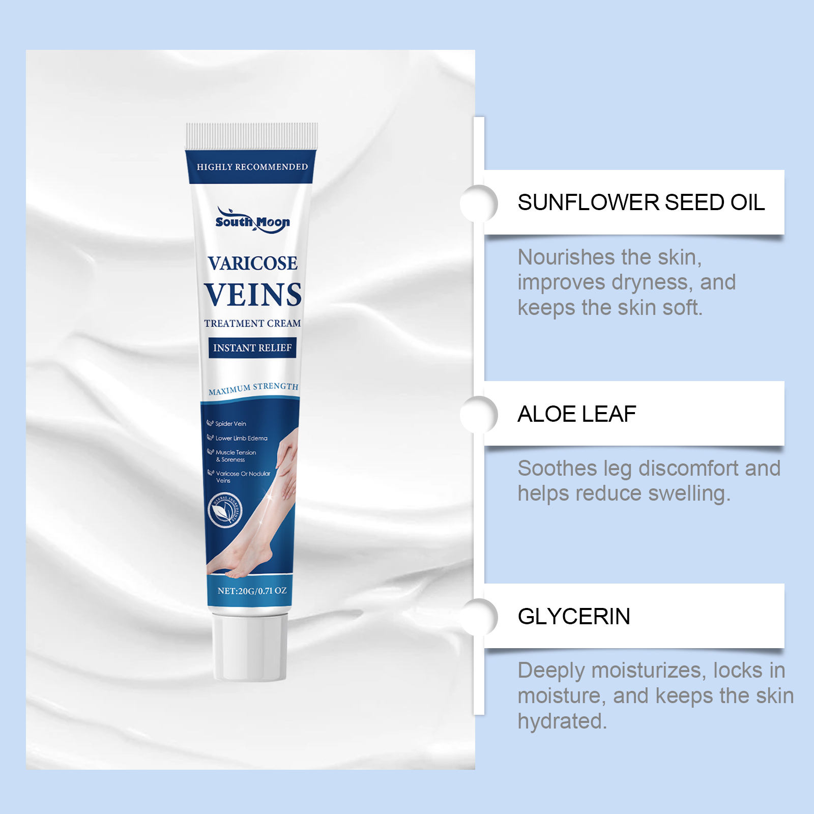 South Moon Herbal Body Care Soothing Cream, Gentle Care For Leg Discomfort Daily Massage Treatment Cream