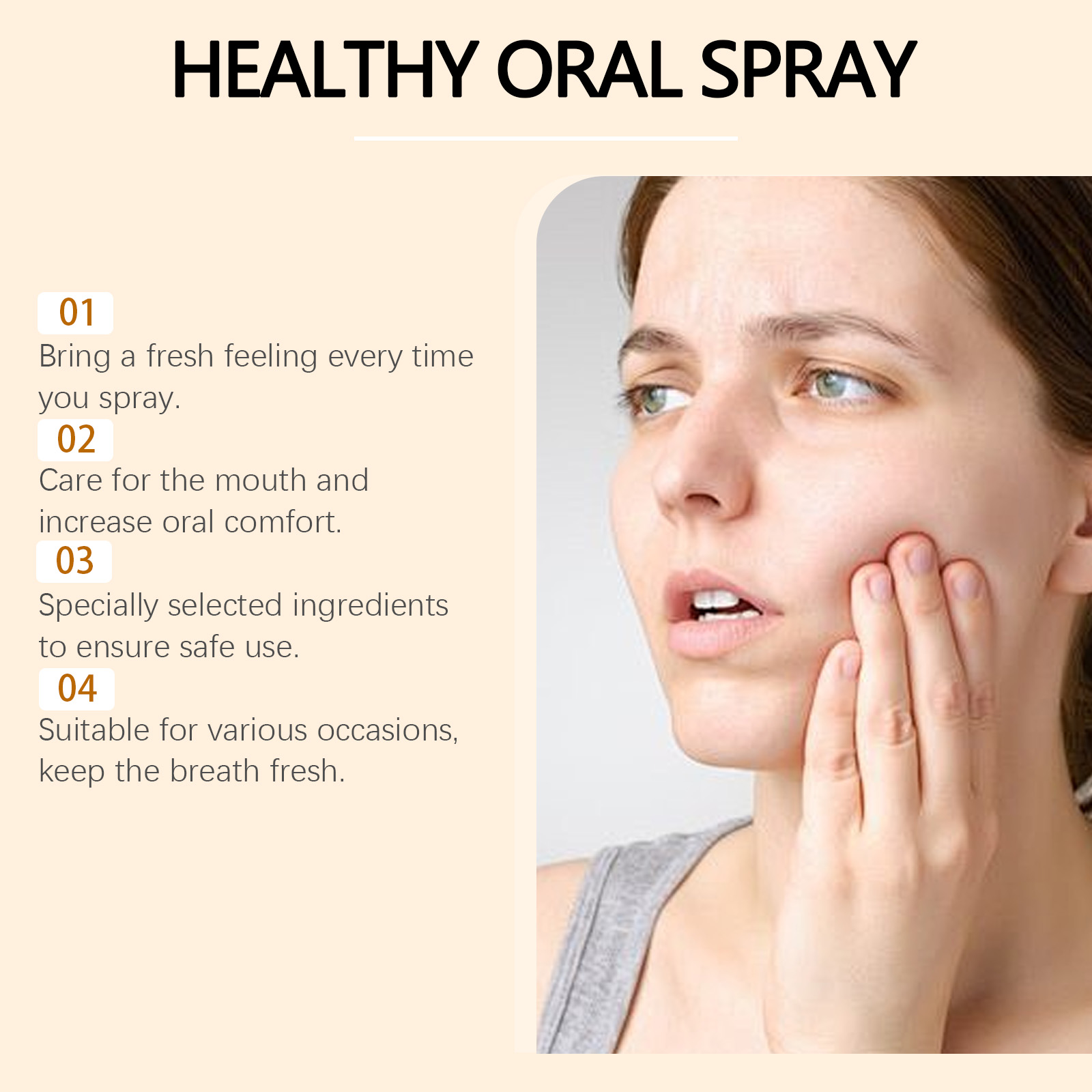 我们的蜂胶口腔喷雾含有山梨酸钾、维生素B1。它可以清新口气,享受天然香气。它的使用方法很简单:打开你的嘴,并将喷嘴对准你的嘴;轻按喷嘴,喷出适量的喷雾;漱口后吐掉漱口水。并且采用温和成分,提供护理。