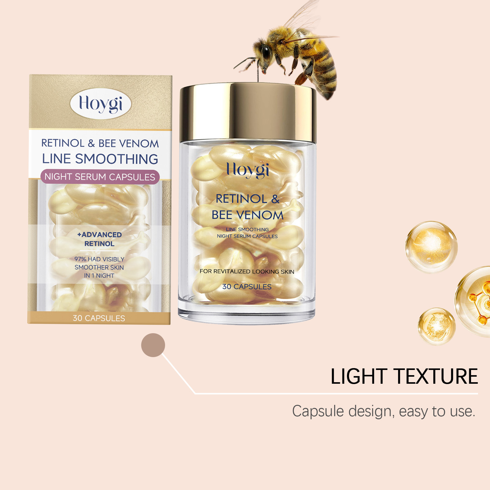 Hoygi Retinol Beesvenom Face Capsule, Gently Moisturizes Facial Skin, Firming And Improving Skin Quality Hydrating Capsule