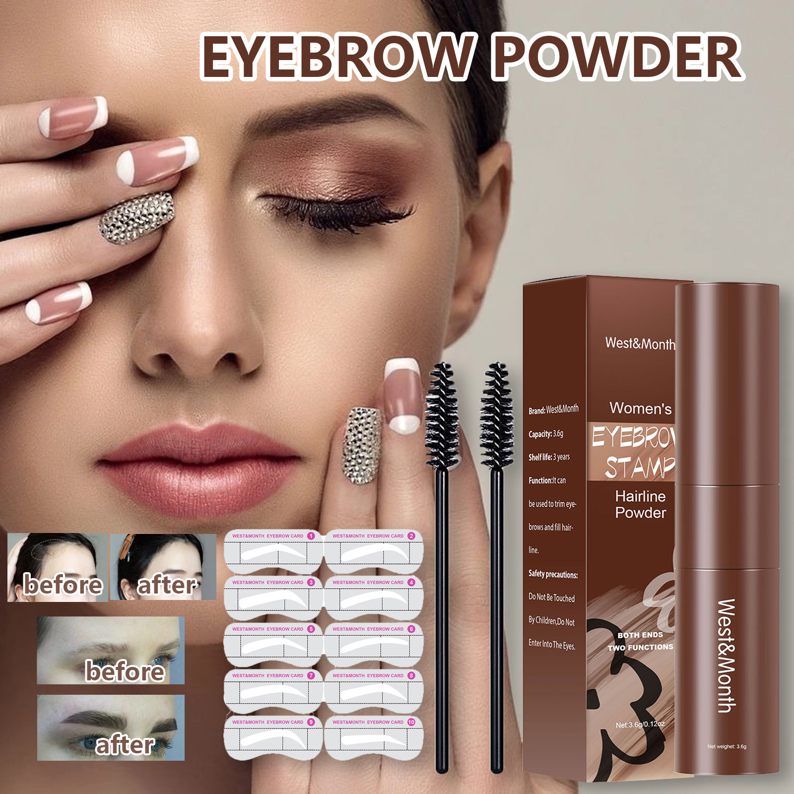West&Month Hairline Eyebrow Contouring Shadow Powder, Hairline Contouring Eyebrow Shape Portable Filler