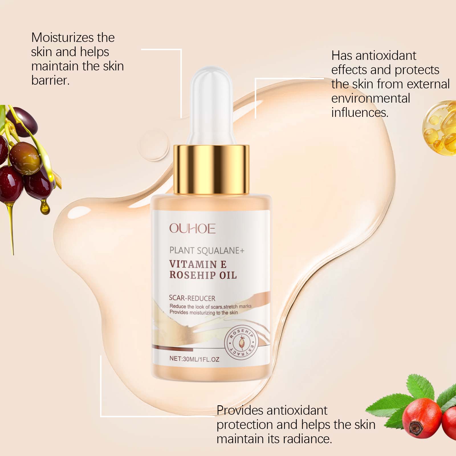 OUHOE Moisturizing Squalane Light Wrinkle Skin Care Essential Oil, Smooth Skin Moisturizing And Firming Face Essential Oil