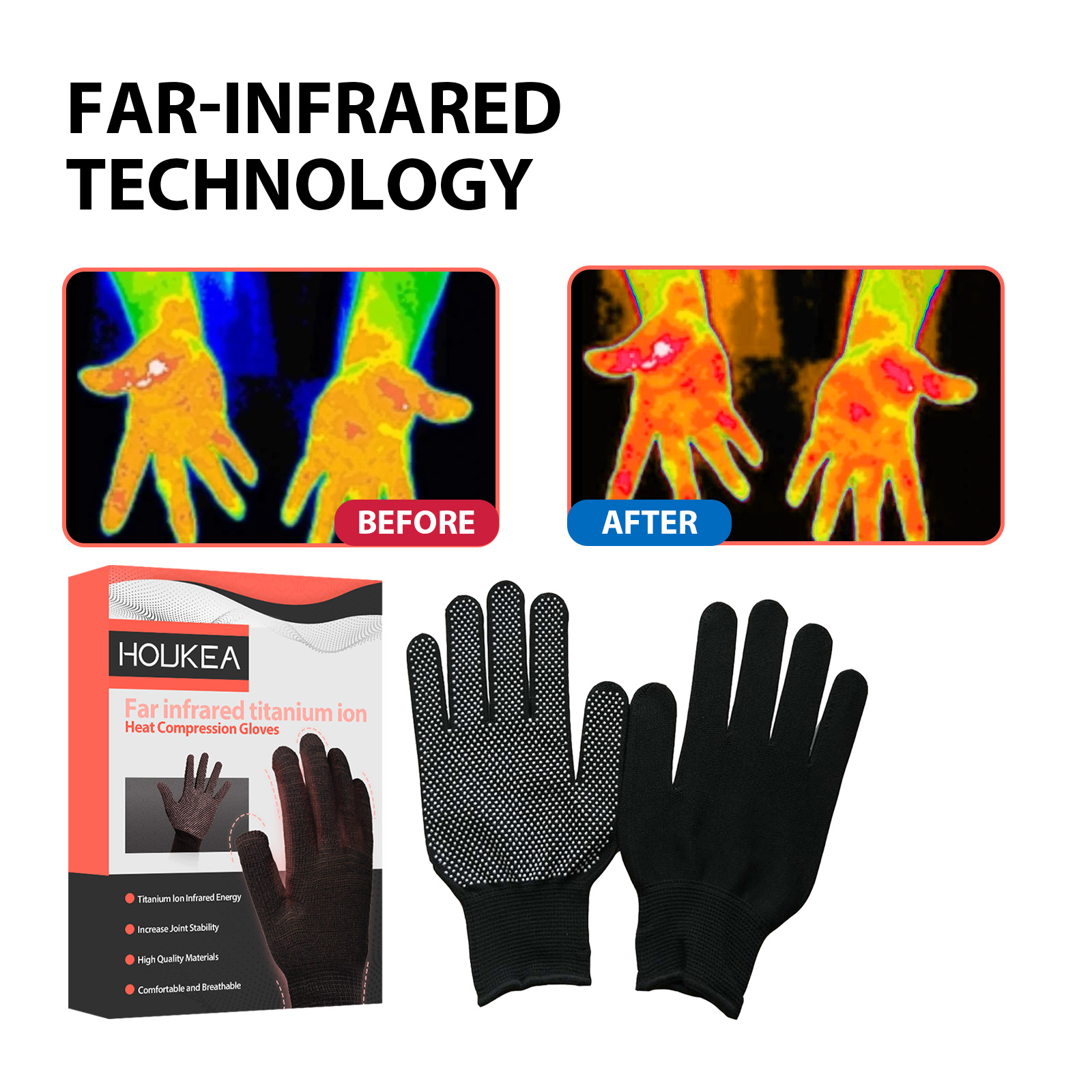 Houkea Far Infrared Titanium Ion Heat Compression Gloves, Relieve Stiffness Of Thumb Joints Sore And Swollen Fingers And Discomfort Care Gloves