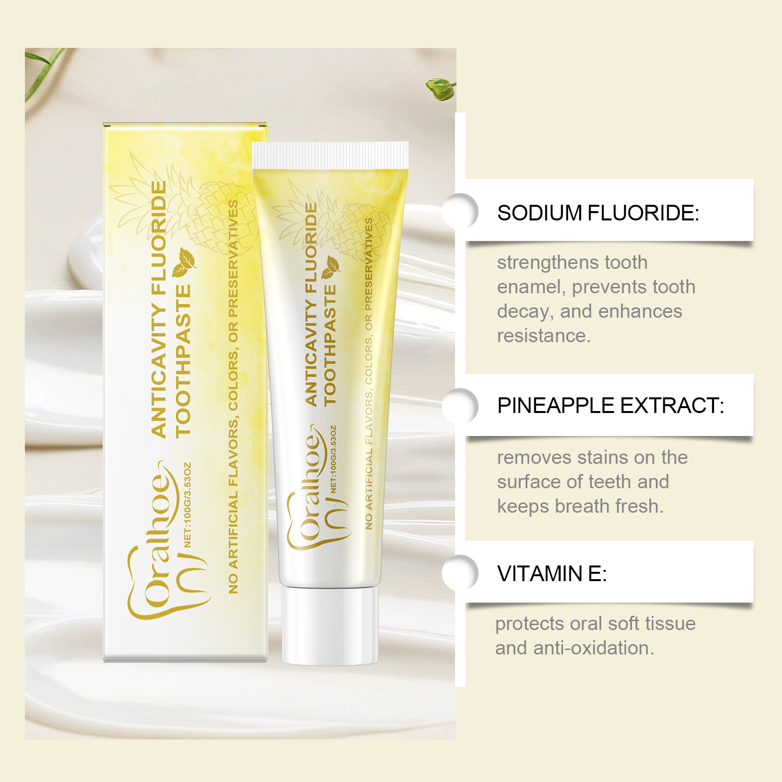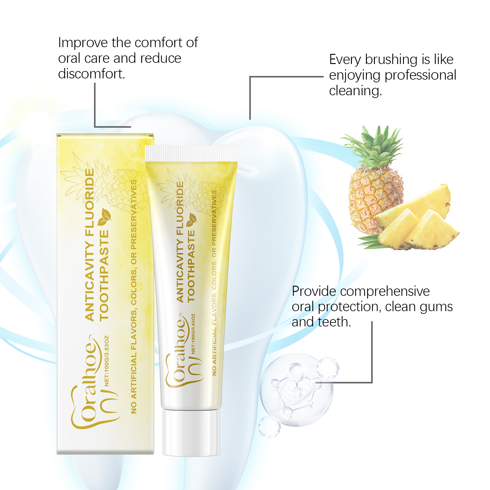 Oralhoe Pineapple Flavor Toothpaste, Mild Fresh Fruit Fragrance Clean Mouth Care Whitening Daily Care Toothpaste