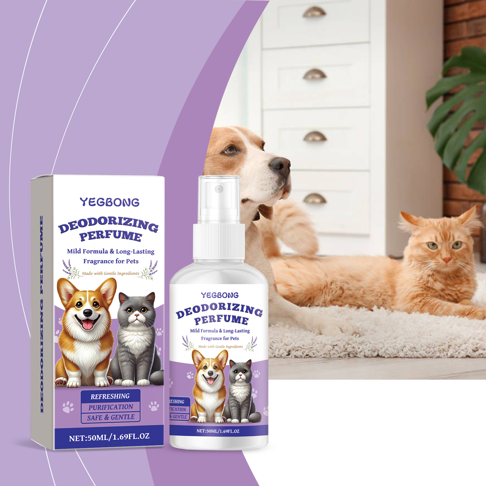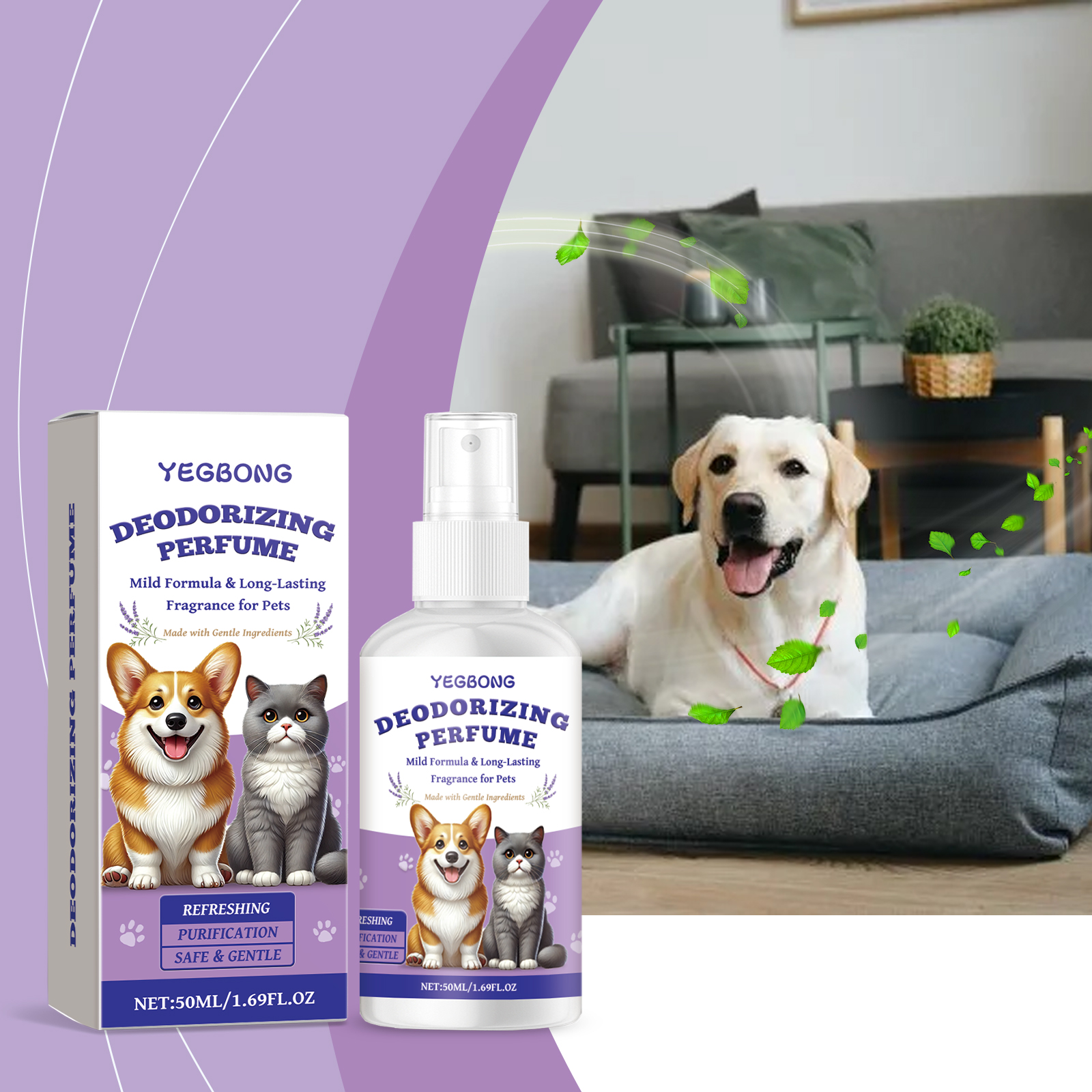 Yegbong Pet Deodorant Spray, For Cats And Dogs Pet Body Odor Cleaning Indoor Refreshing Environment Spray