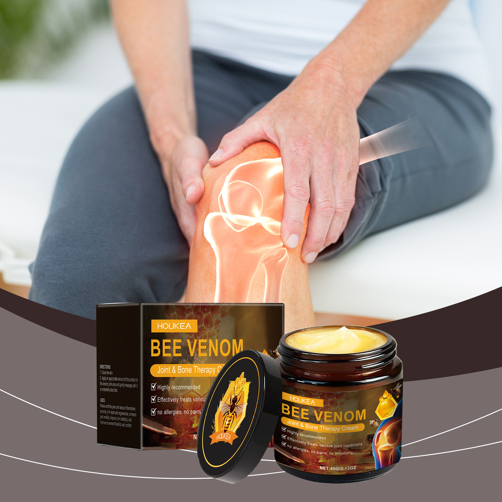 Houkea Bee Venom Joint Care Cream, Gentle Ingredients To Relieve Discomfort Neck Knees Legs Rub Massage Treatment