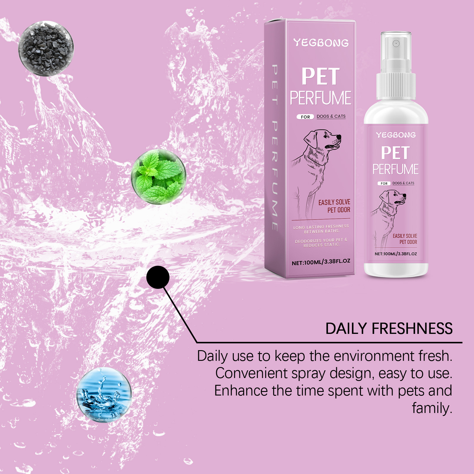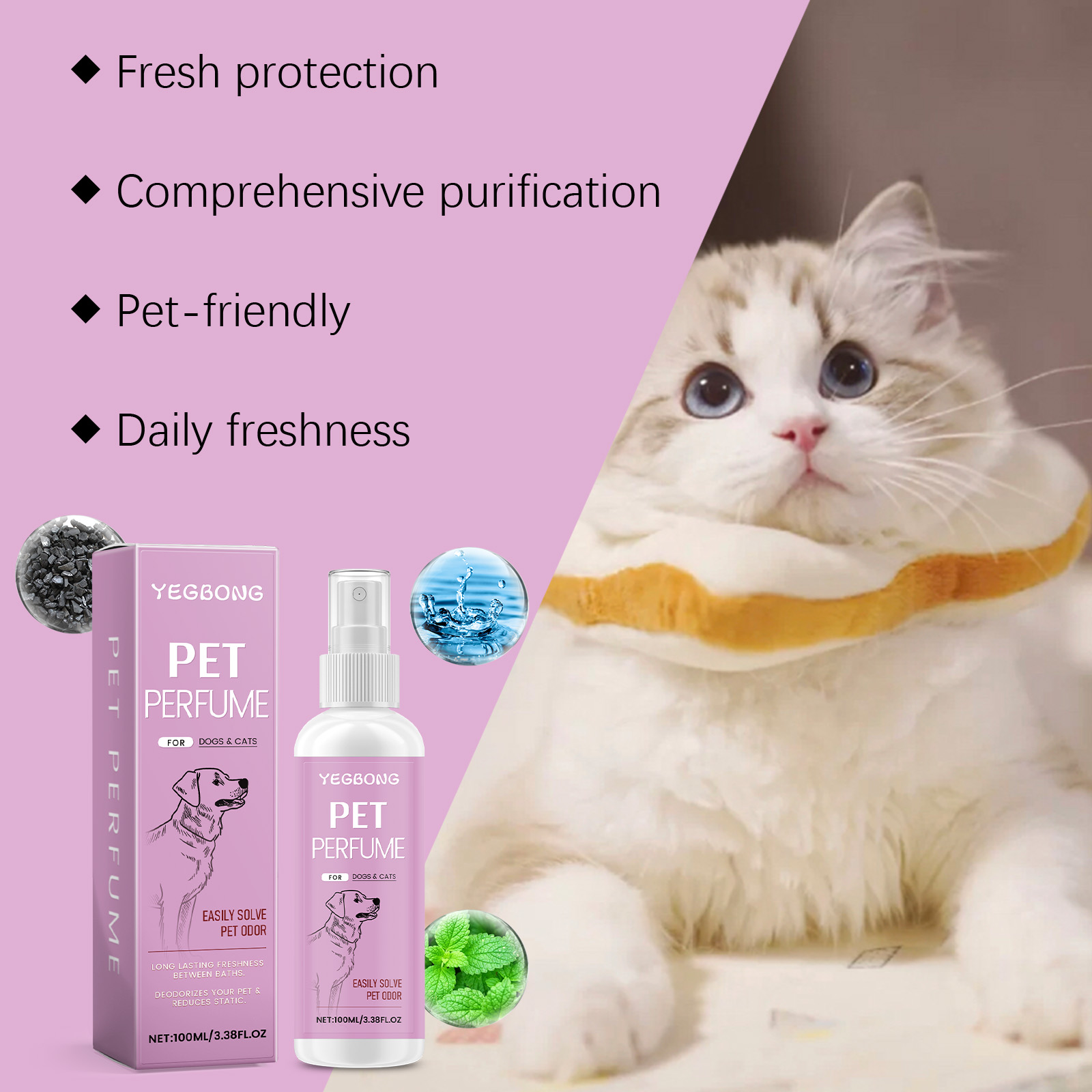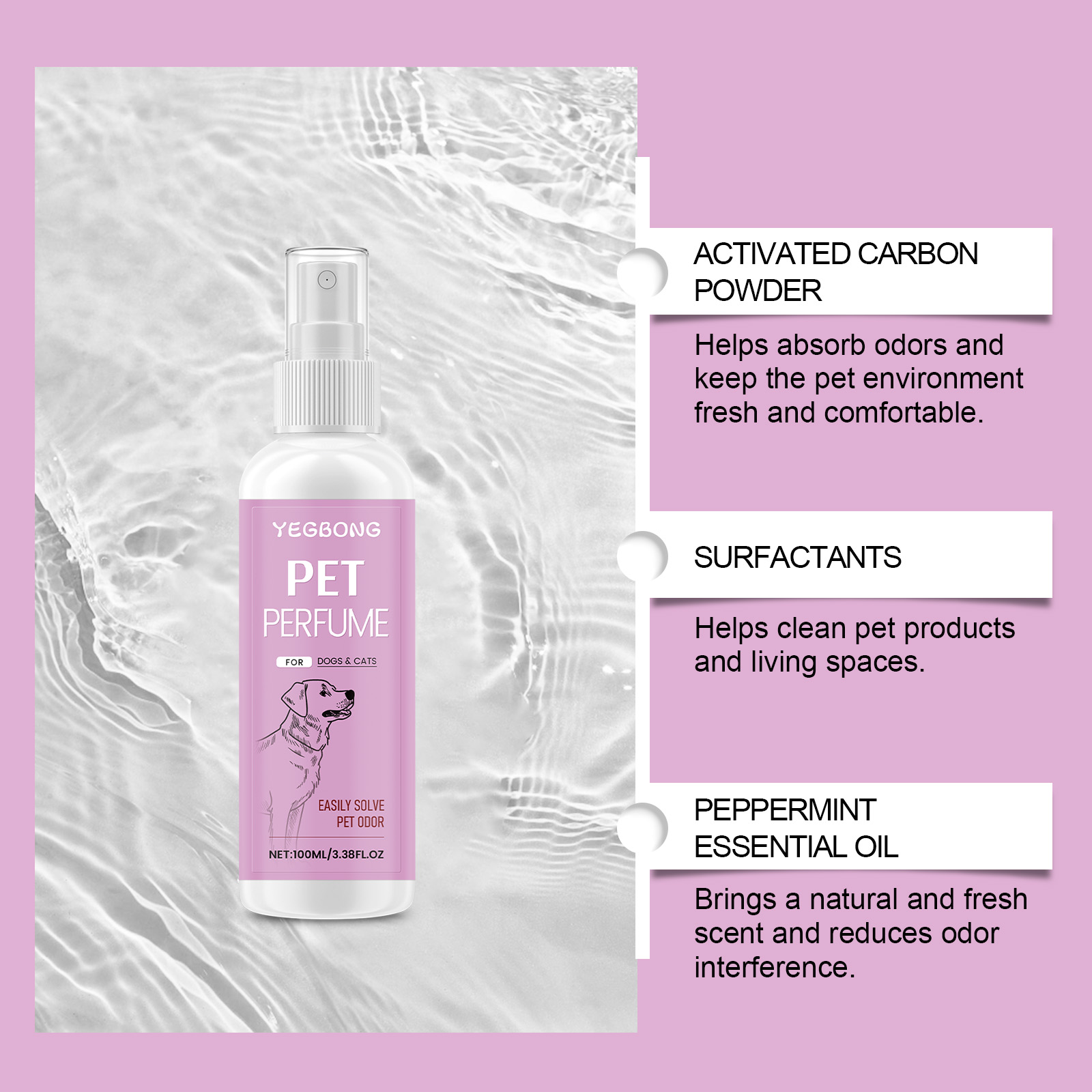 Yegbong Pet Deodorizing Spray, Clean Odor Air Refreshing Treatment Spray For Cats And Dogs