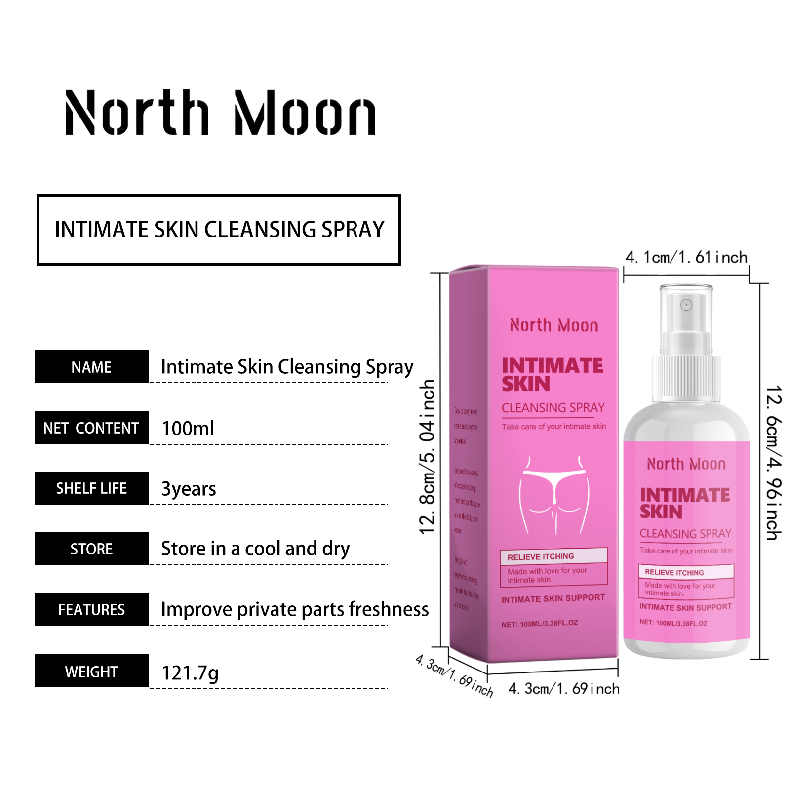 North Moon Ladies Body Cleansing Spray, Gently Cleans The Body And Skin Care Daily Refreshing And Comfortable