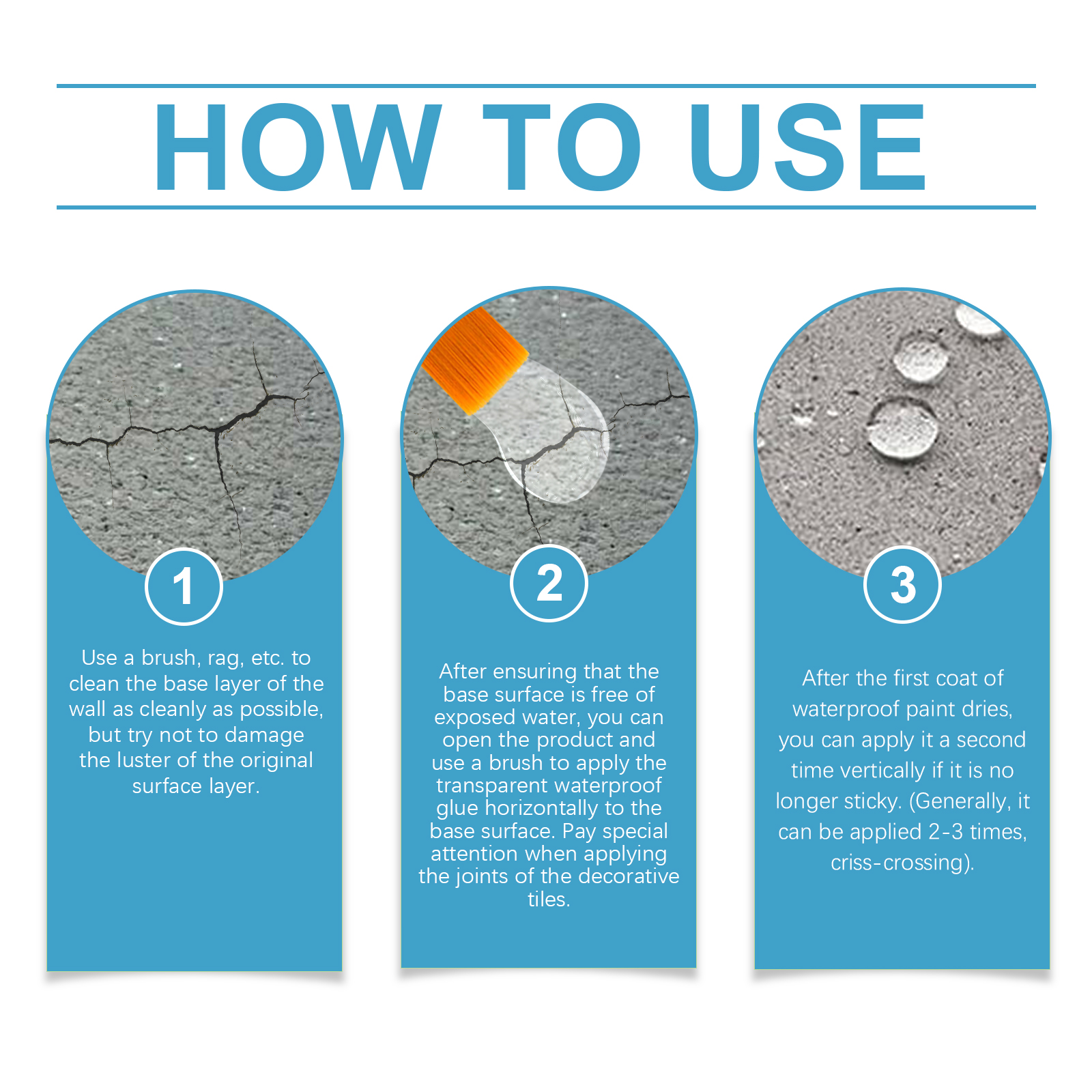 我们的透明防水胶含有聚氨酯乳液、防水剂。它可以提供强力的防水保护,保持干燥。无色配方,完美融合于任何表面。它的使用方法很简单:用刷子、抹布等尽可能干净地清洁墙体的基础层,但尽量不破坏原有表面层的光泽。在确保基面没有暴露的水分后,您可以打开产品,并使用刷子将透明防水胶水水平涂抹到基面上。在涂抹装饰瓷砖的接缝时,请特别注意。第一层防水涂料干燥后,如果不再粘稠,可以垂直涂第二层。一般可以纵向涂2-3次。并且使用高级配方为基底表面创建坚固持久的保护屏障,有效抵抗水分渗透。告别与水分相关的各种问题、漏水和不雅污渍。