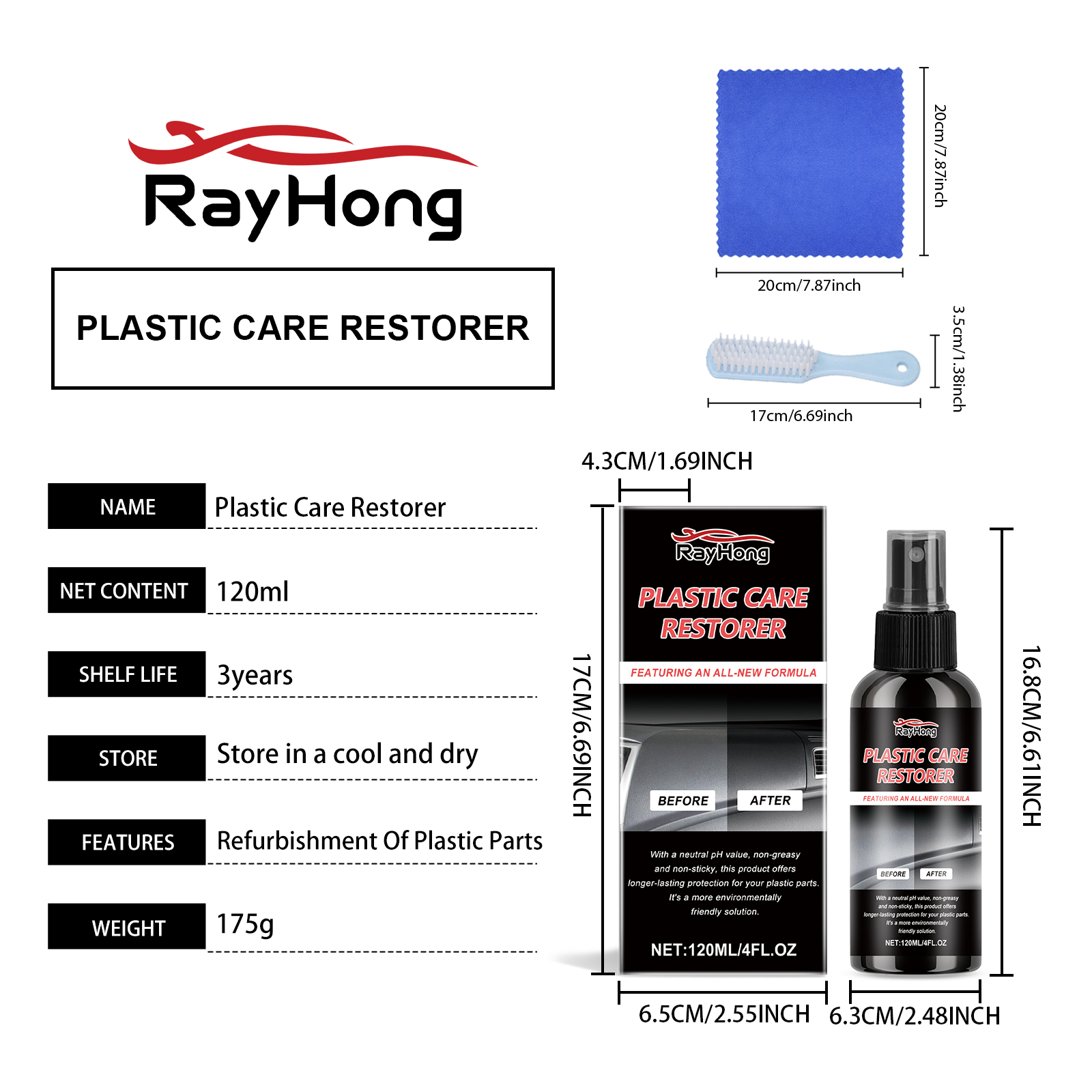 Rayhong Automotive Plastic Care Agent, Automotive Plastic Interior Parts Cleaning Crystal Coating Maintenance Coating Agent