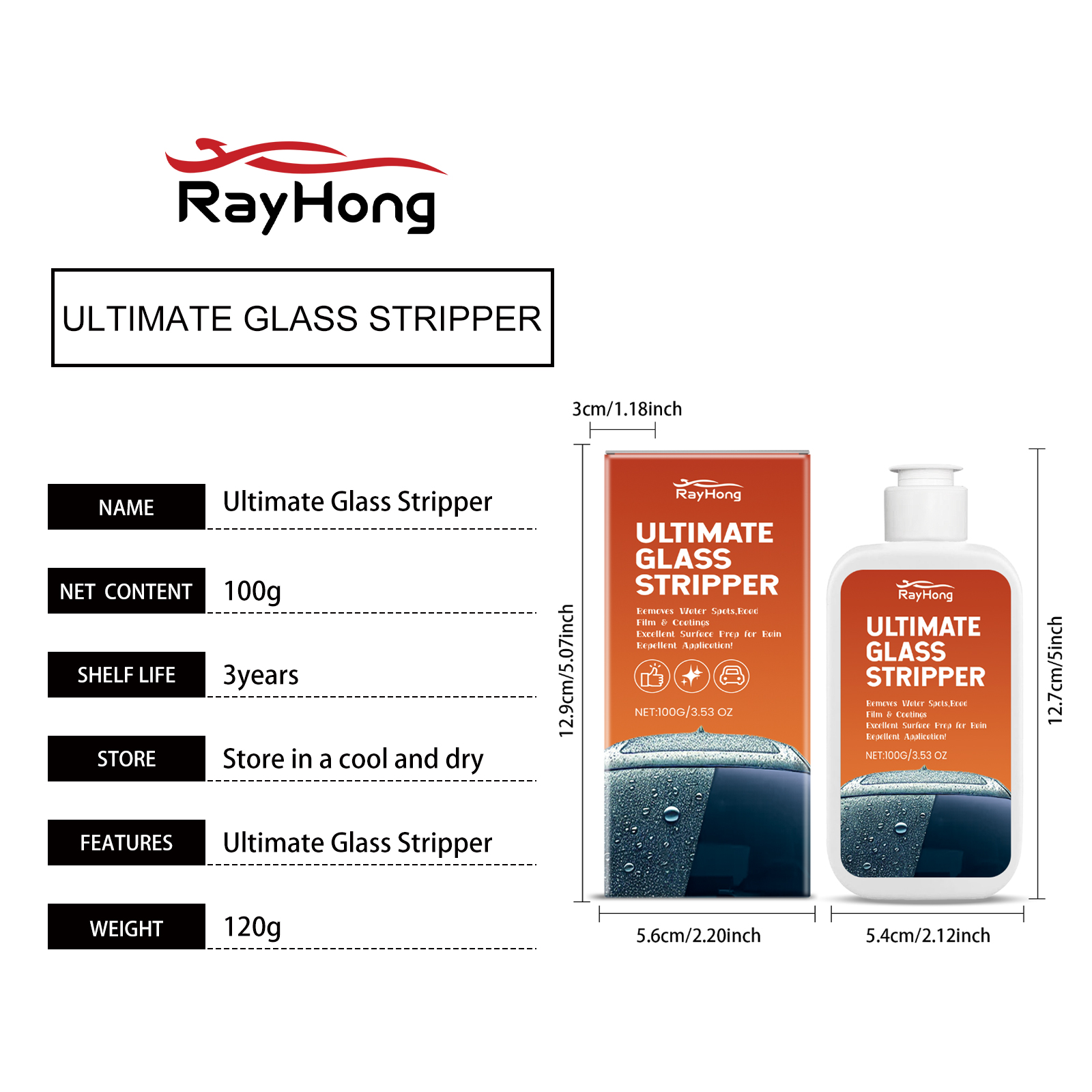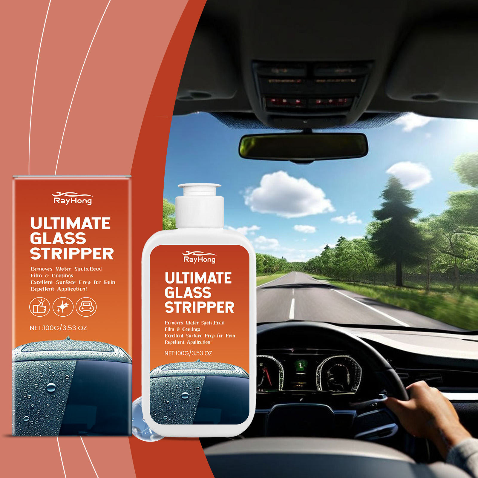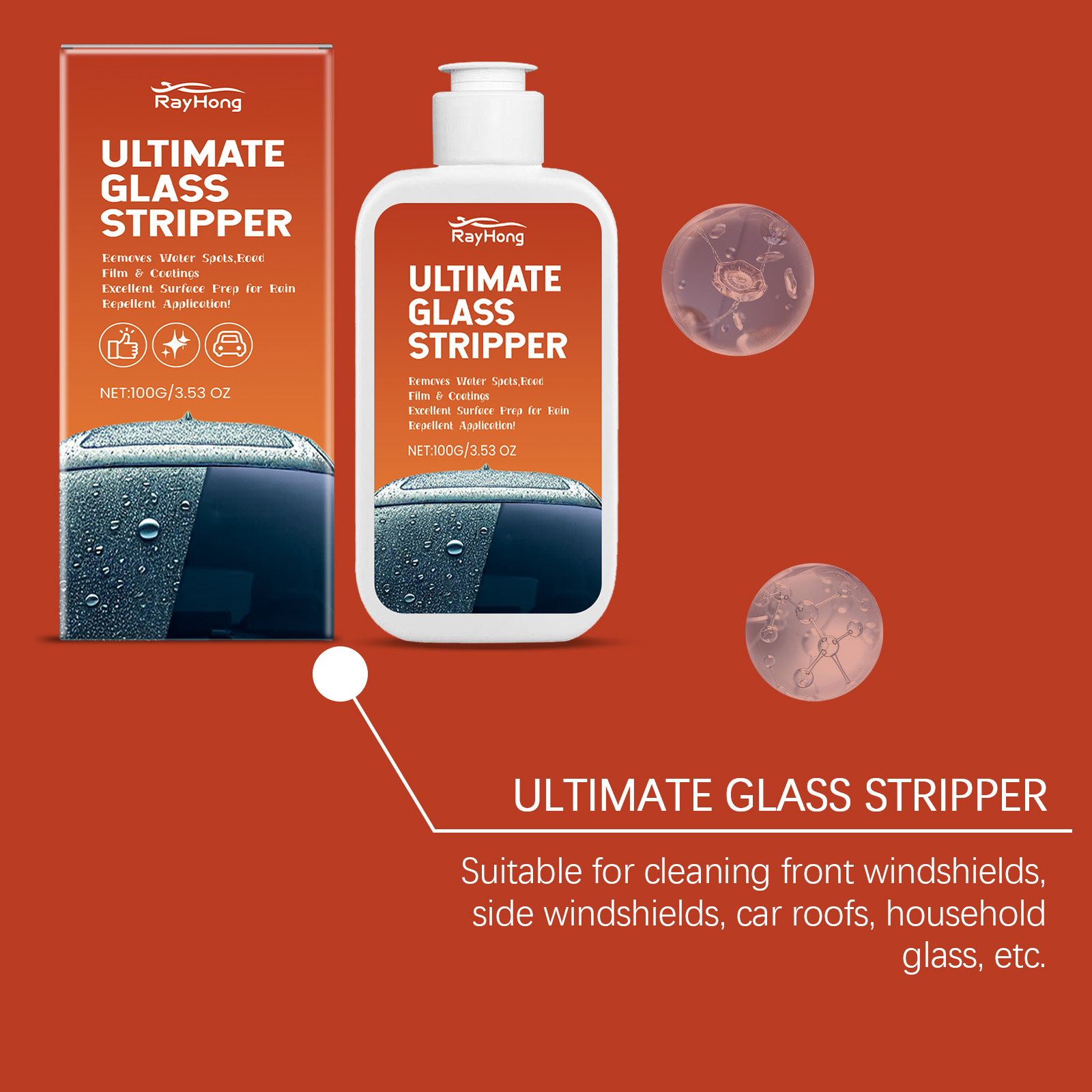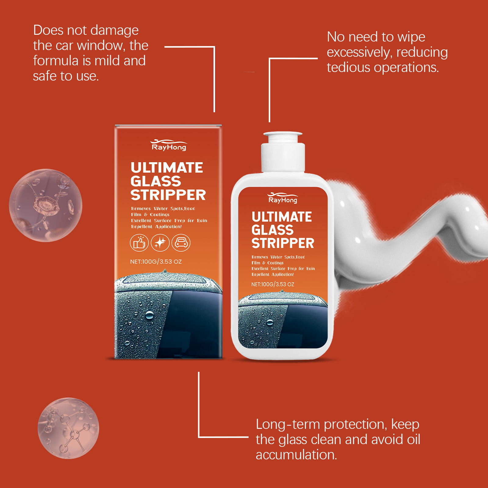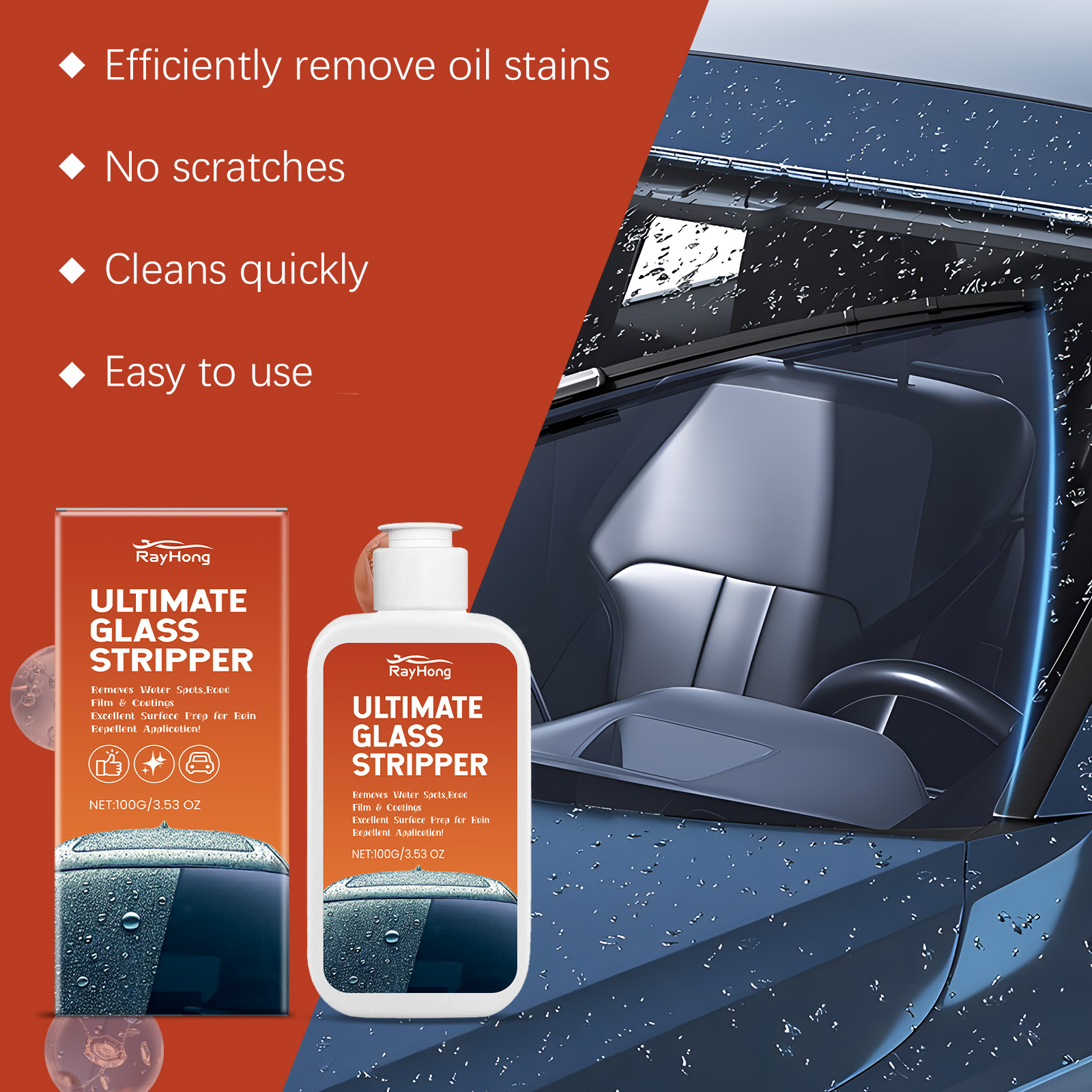 Rayhong Car Glass Oil Remover, Window Glass Cleaning Remove Stains Remove Dust Car Oil Remover