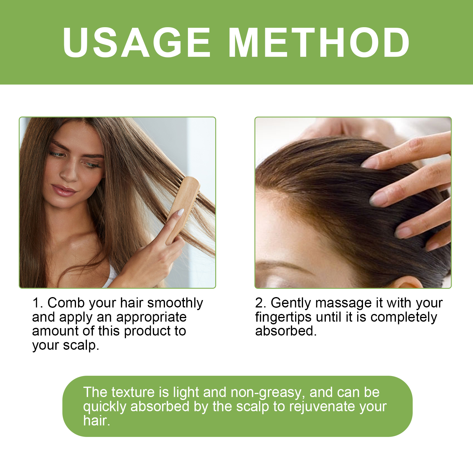 我们的头发护理精油含有迷迭香叶油、氢化橄榄油。它可以滋润头皮,防止干燥,强健头发,减少脱发,使头发更健康;防止脱发,尽量减少头发断裂。帮助加强毛囊。修复受损头发。它的使用方法很简单:1. 梳顺头发,取适量本品涂抹于头皮。2. 用指尖轻轻按摩,直到完全吸收。密发精油质地轻盈不油腻,能迅速被头皮吸收,使头发焕发活力。