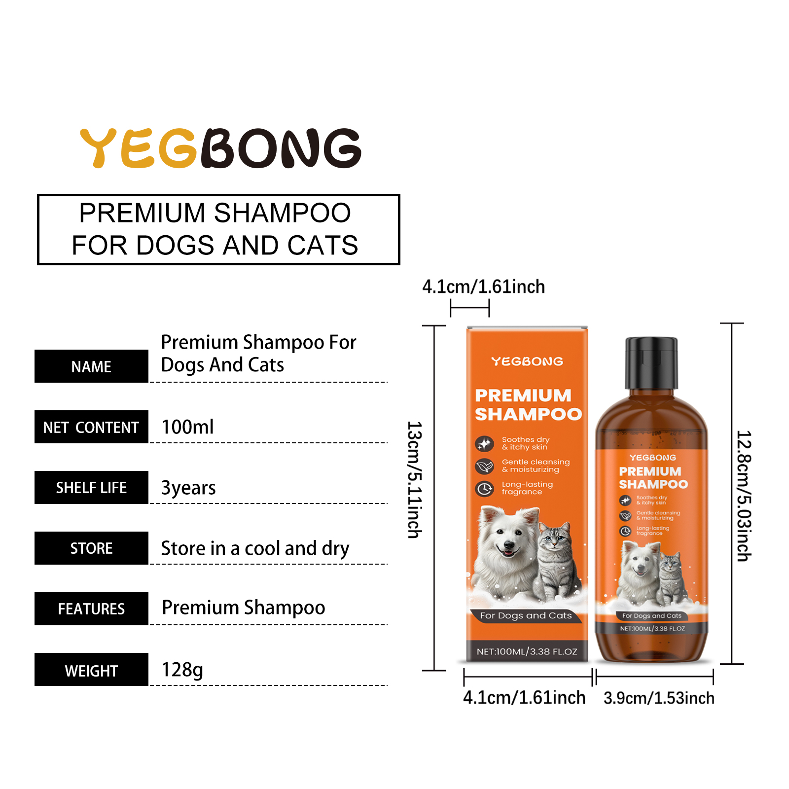 Yegbong Pet Shampoo, Mild Ingredients Pet Hair Odor Cleaning Fluffy Soft Shampoo