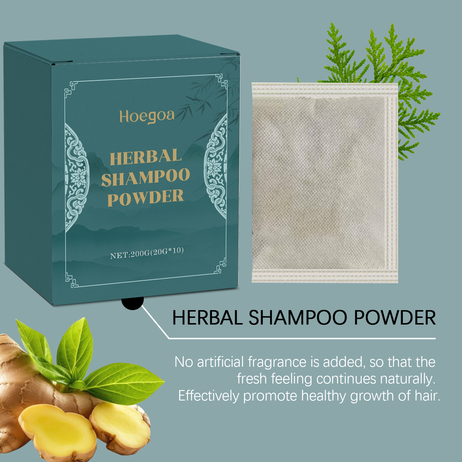 Hoegoa Herbal Shampoo Powder, Mild Ingredients Tea Bran Shampoo Powder Herbal Hair Care Cleansing Shampoo Powder