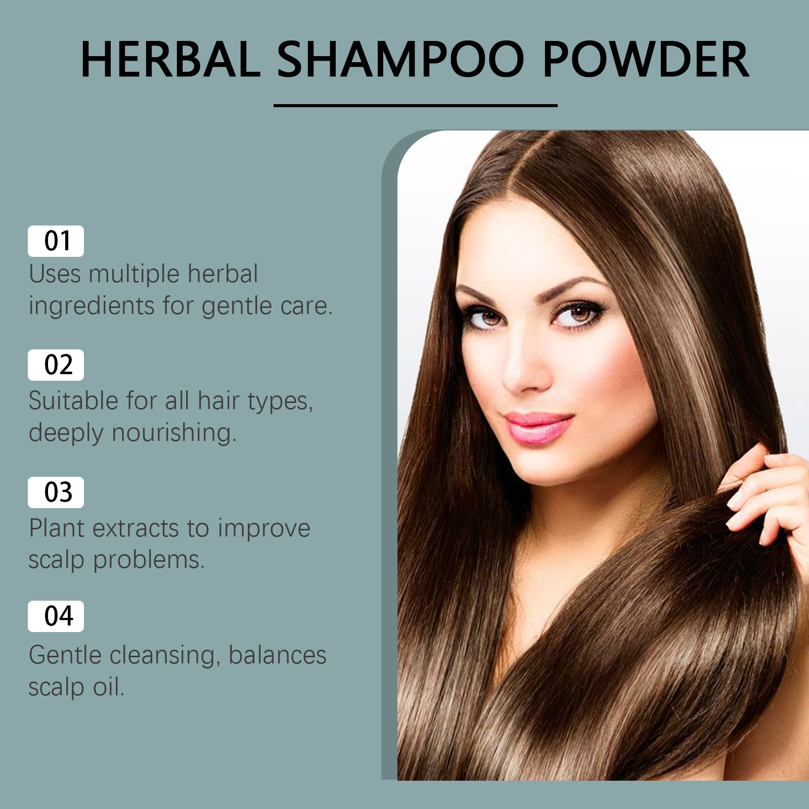 我们的草本洗发粉含有皂角提取物、侧柏叶提取物。它可以滋润头皮,防止头发干燥。它的使用方法很简单:取一包本品放入盆中,加入适量热水。将头发放入盆中,充分浸泡,然后轻轻按摩头皮。用温水冲洗。并且具有细腻泡沫,温和清洁不伤发。