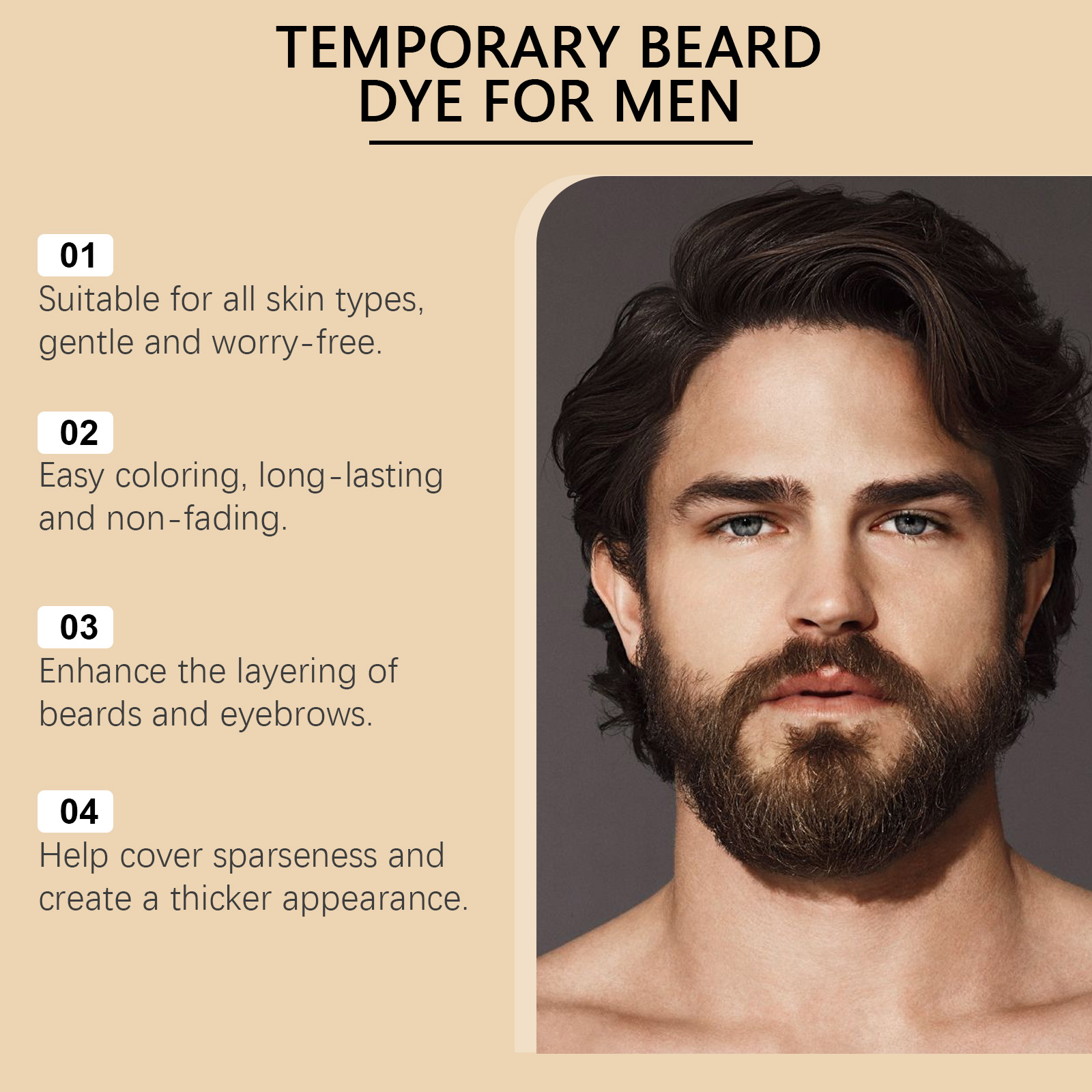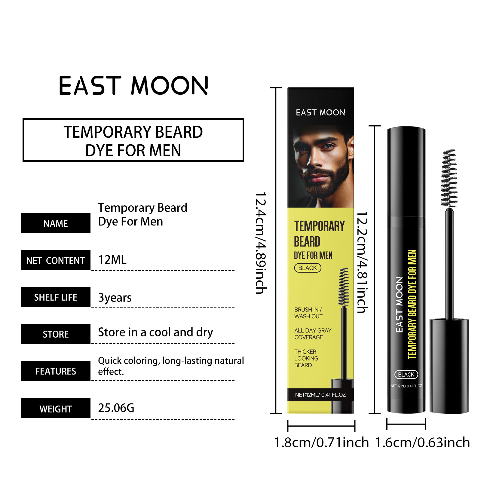 East Moon Black Men's Beard Eyebrow Dye, Moisturizes Moisturizing Men's Beard Naturally Lasting Without Bleach