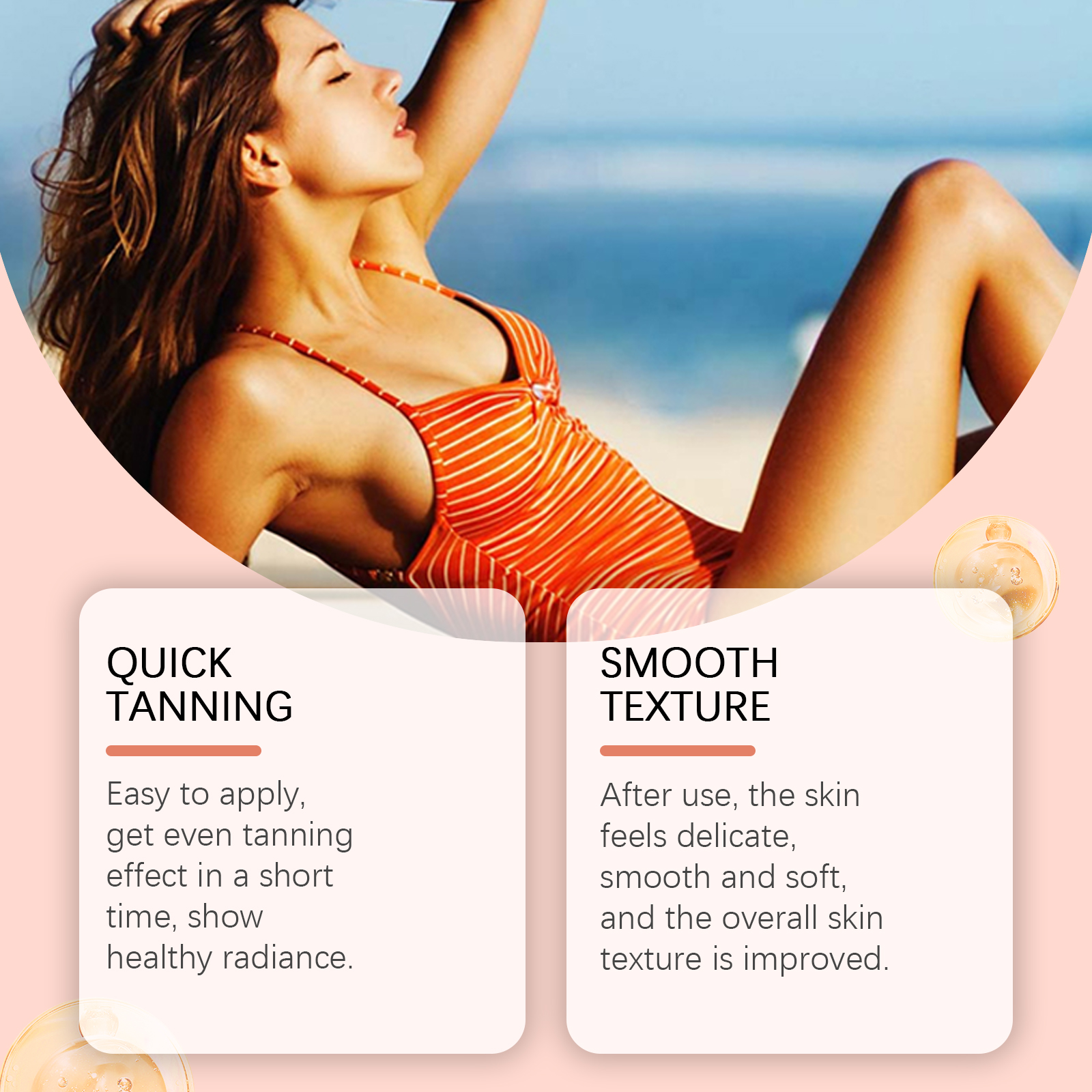 我们的保湿助黑霜含有三乙醇胺、可可提取物、西瓜果实提取物。它可以短时间内获得均匀的晒黑效果,展现健康的容颜。它的使用方法很简单:清洁皮肤并保持干燥。取适量本品均匀涂抹于身体肌肤上。轻轻按摩以促进吸收。并且使用后,肌肤感觉细腻、光滑、柔软,整体肌肤质地得到改善。