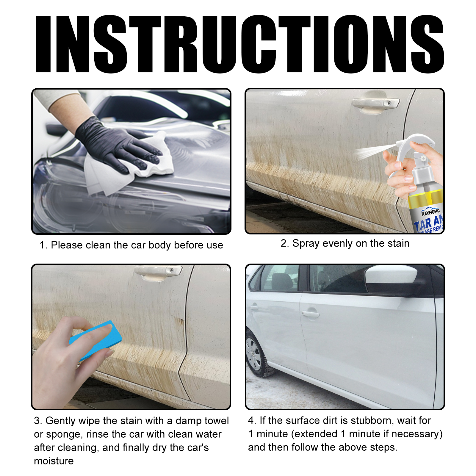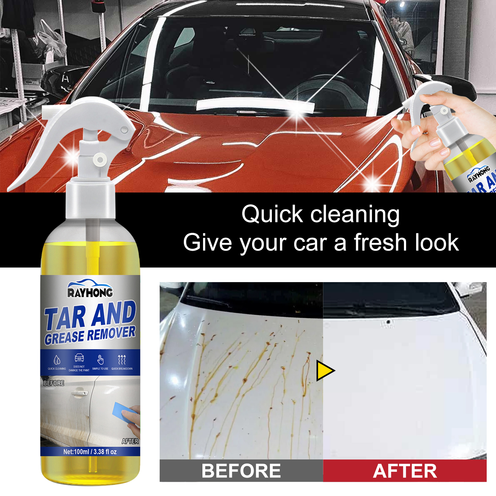 rayhong Tar And Grease Remover, Effective Removal Of Surface Dirt Oil Stains Tar Sap Cleaning Agent