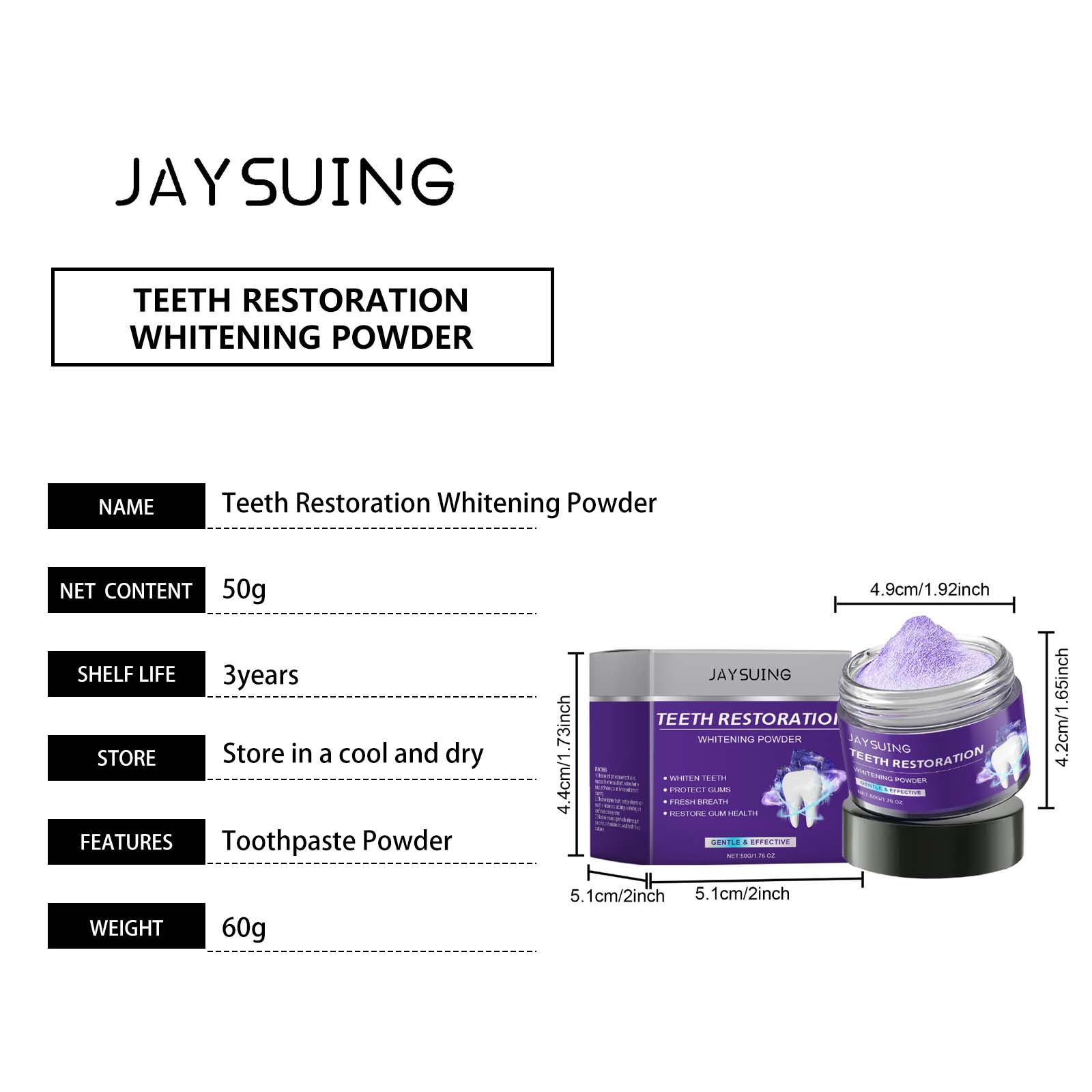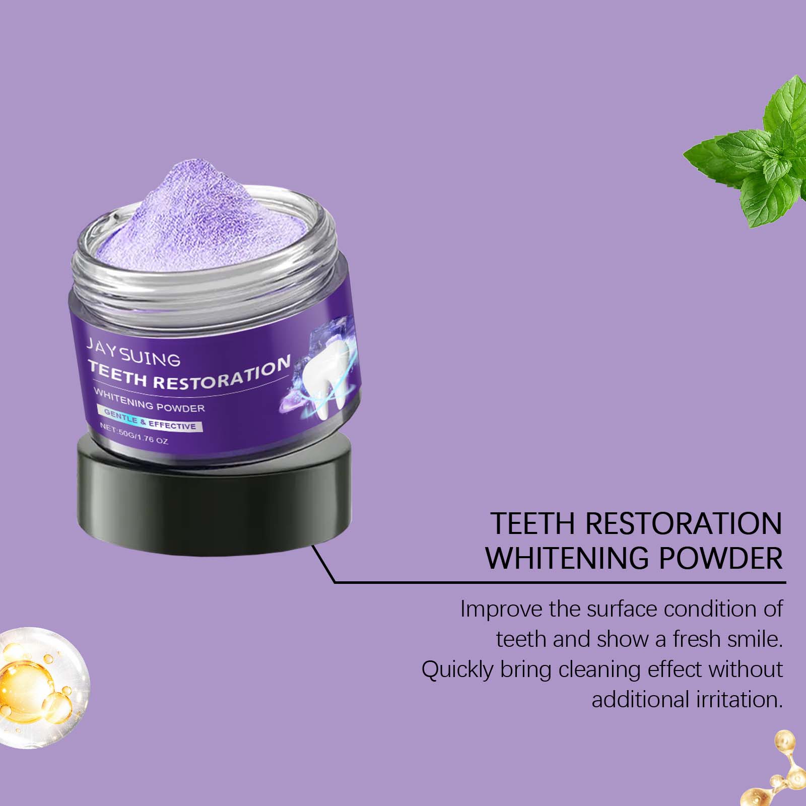 Jaysuing Purple Whitening Whitening Teeth Powder, Oral Cleaning Teeth Cleaning Gingiva Fresh Breath Cleaning Teeth Care
