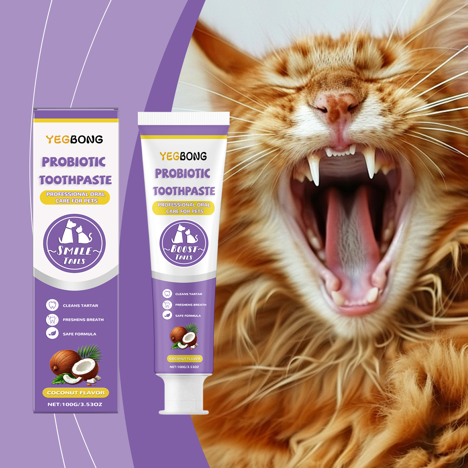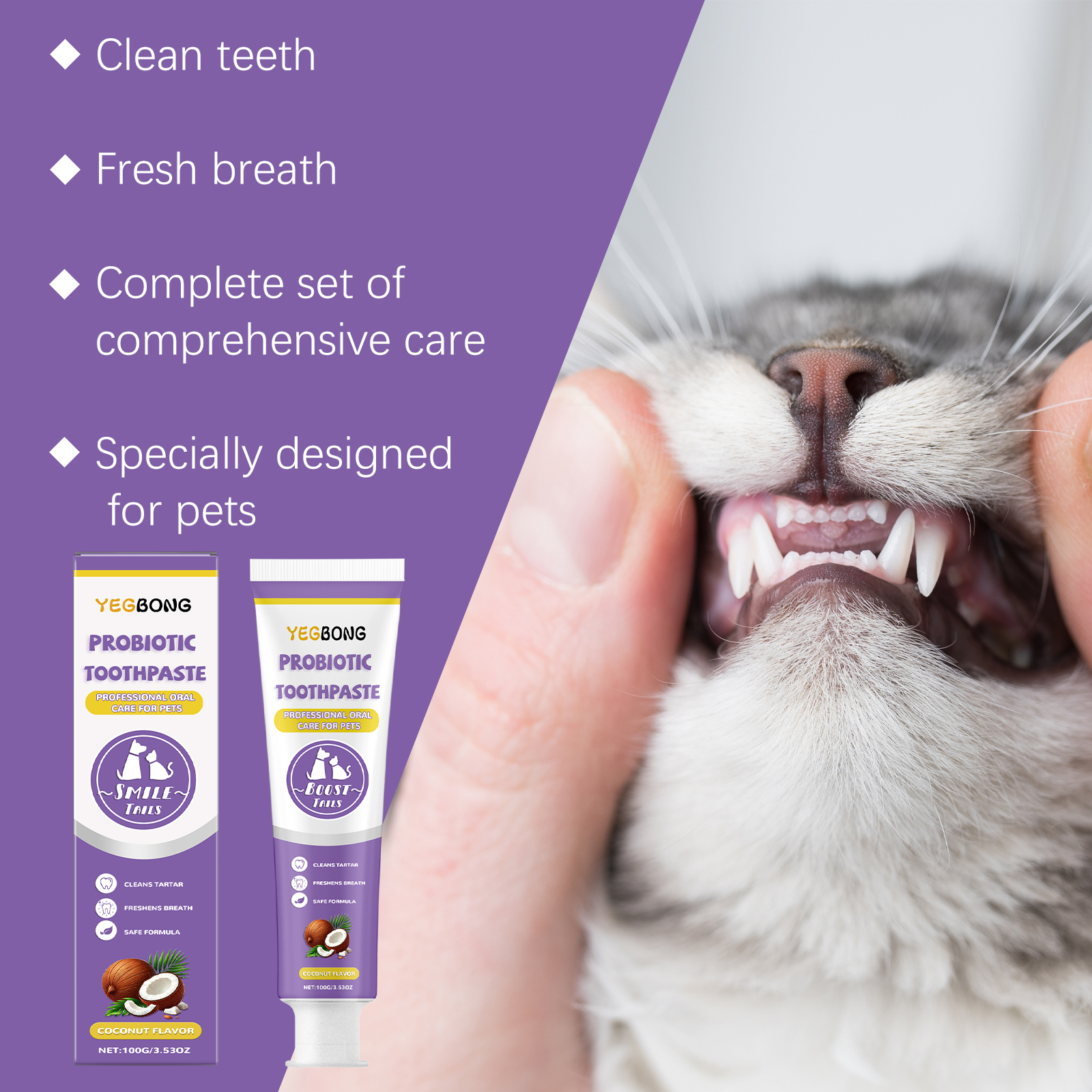 Yegbong Pet Probiotic Toothpaste, Pet Teeth Clean Stains Yellow Mouth Smell Fresh Breath