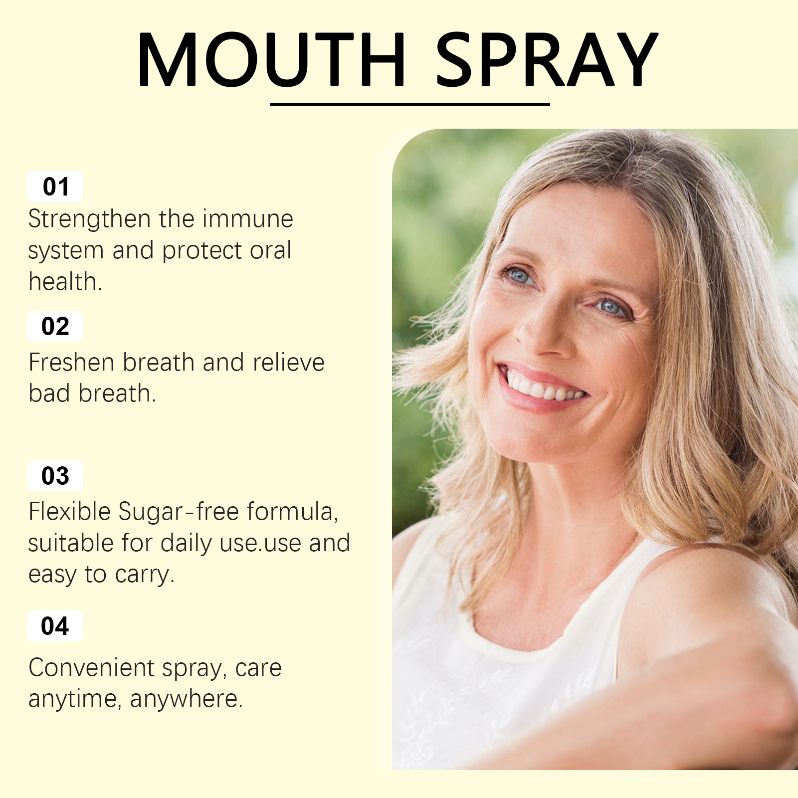我们的蜂胶囗腔喷雾含有薄荷提取物、葡糖酸内酯。它可以有助于增强身体的免疫防御和保持活力。有效缓解口臭,带来清新口气。它的使用方法很简单:摇匀产品,喷入口中每次按压2-3次,每天1-2次。并且它无糖、无刺激性、安全温和。适合早晚使用,全天口腔保护。