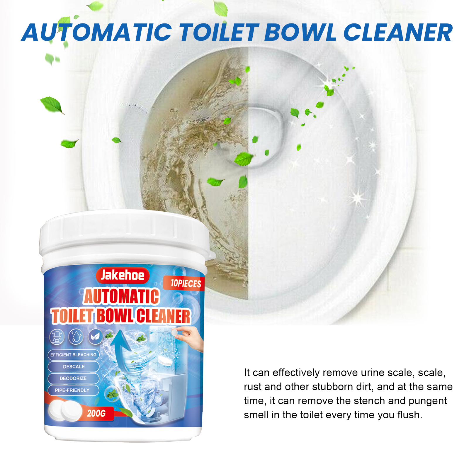 Jakehoe Automatic Toilet Bowl Cleaner, Toilet Deodorant Decontamination Deodorant Household Cleaning Tablets