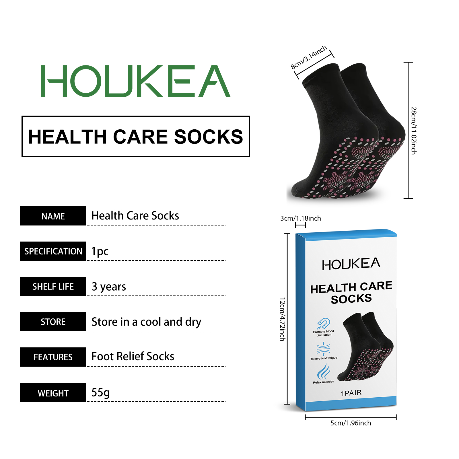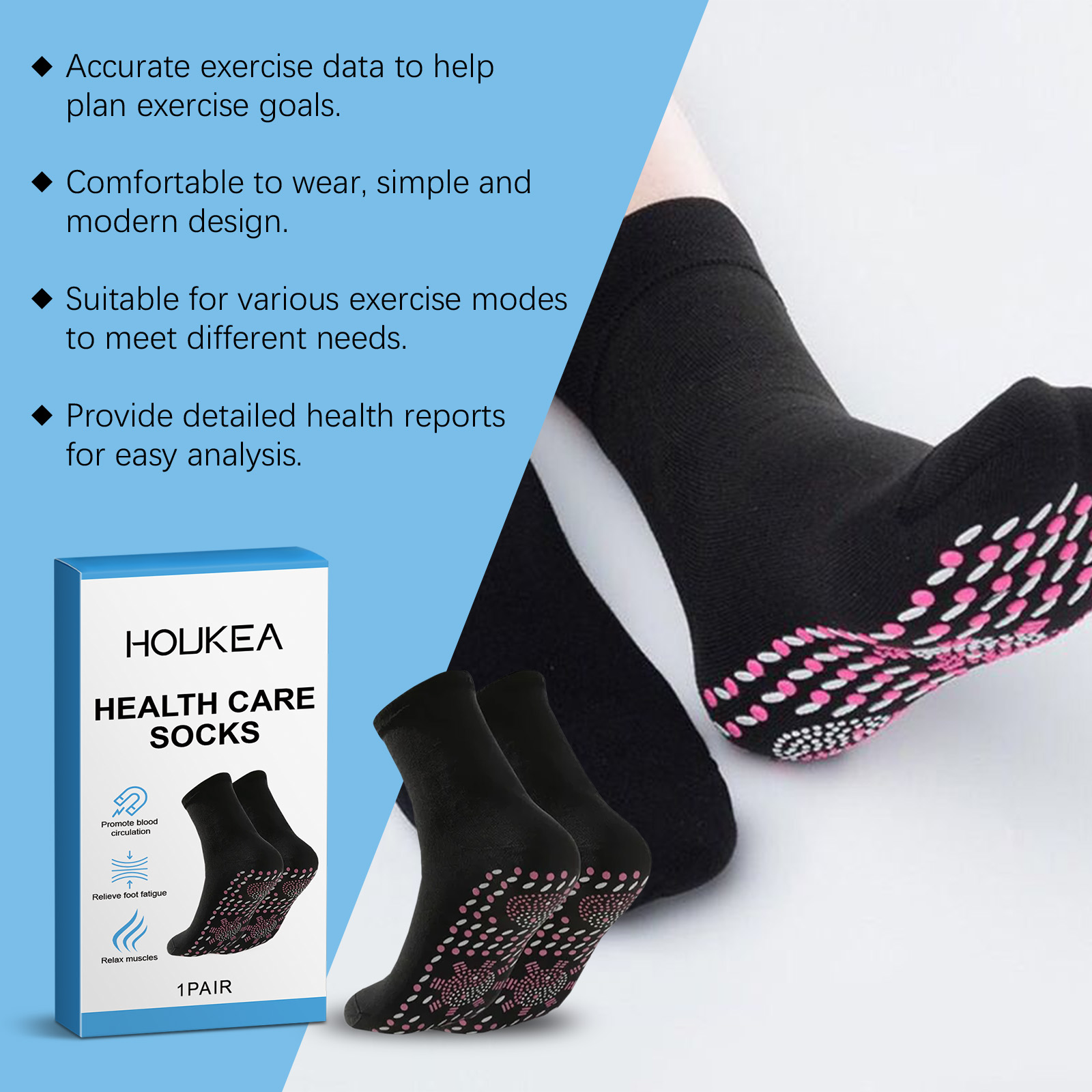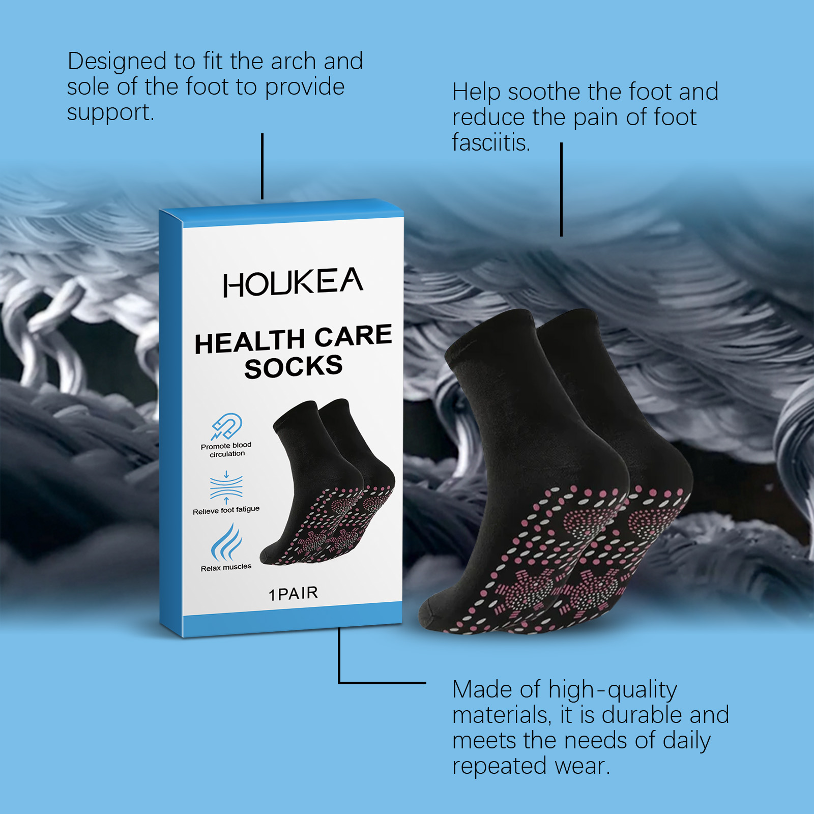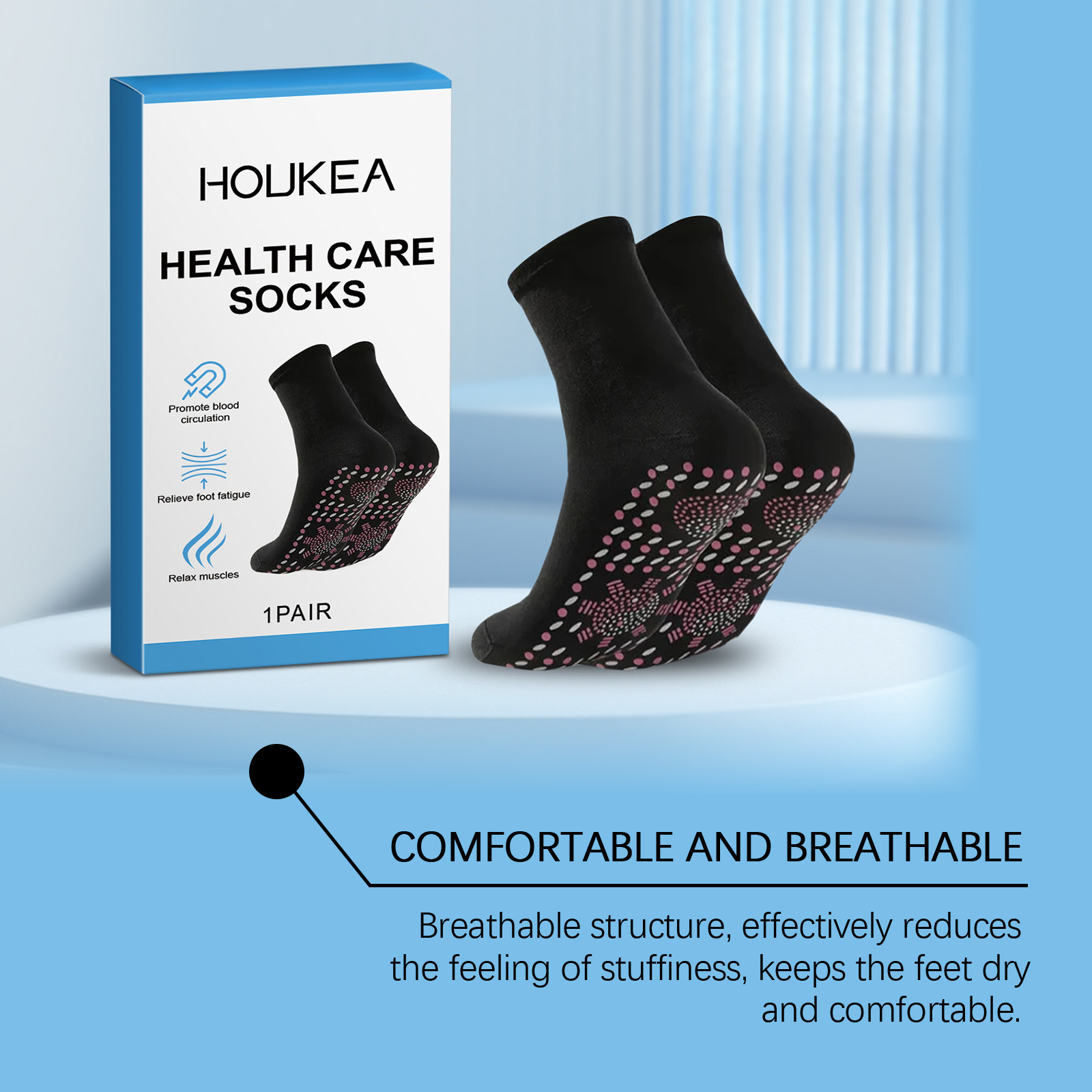 Houkea Foot Care Socks, Relieve Foot Discomfort Breathable Comfort Skin Friendly Foot Massage Socks