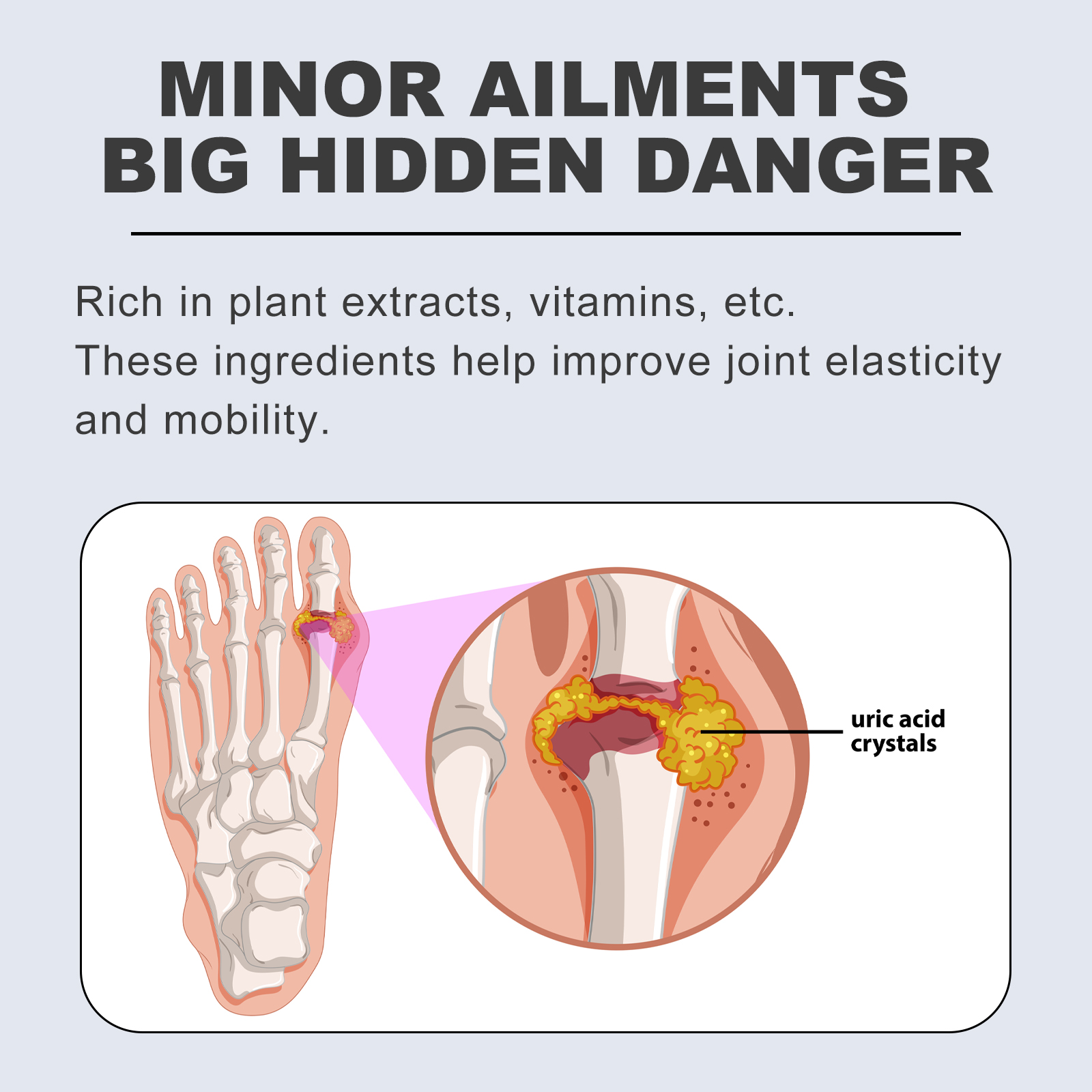 我们的关节护理霜含有三乙醇胺、库拉索芦荟叶提取物。它可以有助于提高关节弹性和灵活性,防止复发,缓解痛风引起的疼痛,缓解关节疼痛、活动受限、肿胀发炎等。它的使用方法很简单:1. 清洗后的关节皮肤。2. 取适量凝胶涂抹于患处。3. 轻轻按摩至吸收。关节护理霜缓解不适,消炎,增加关节灵活性;滋养关节,改善关节功能,提高生活质量。