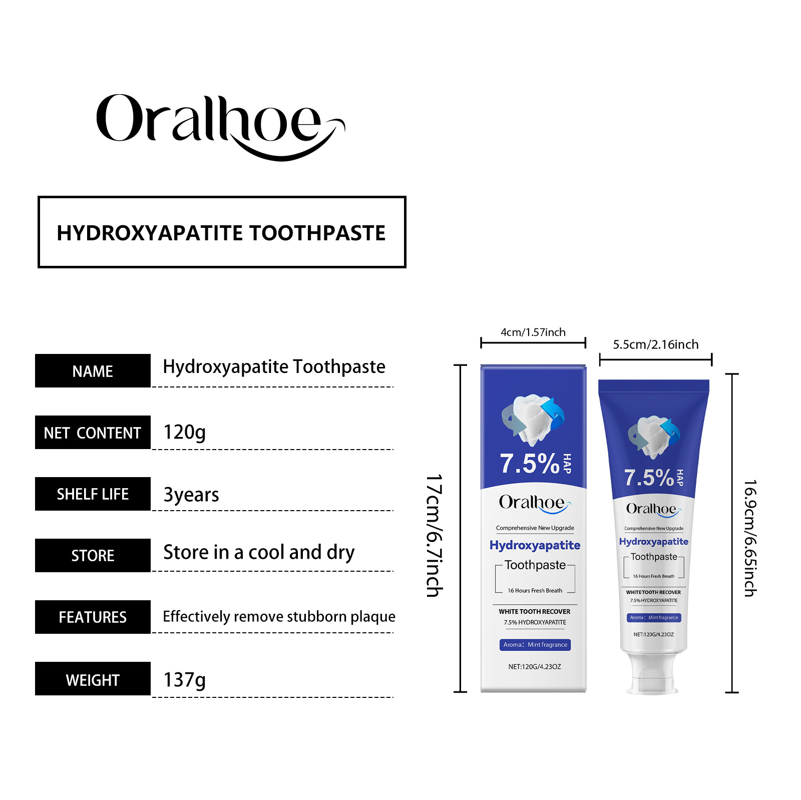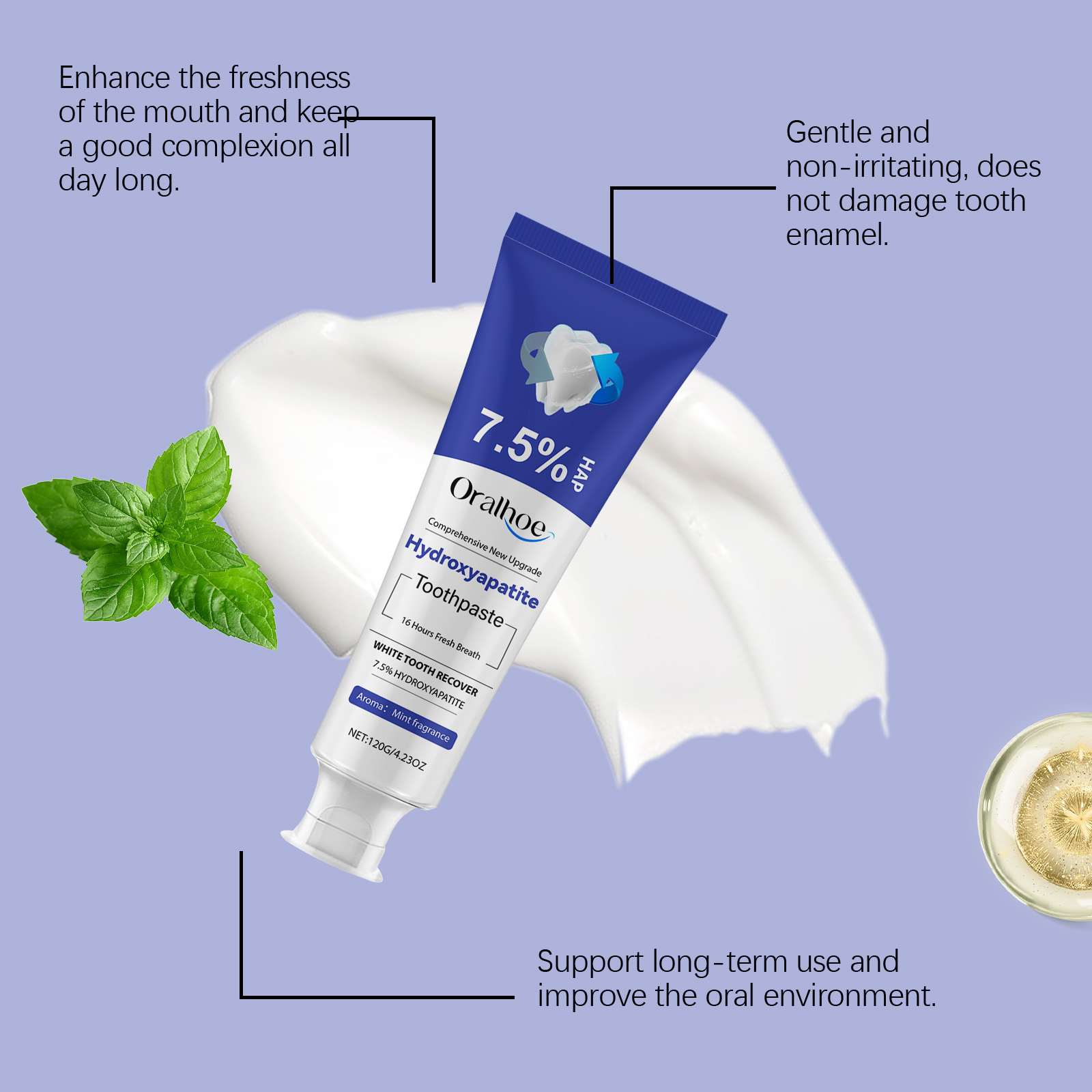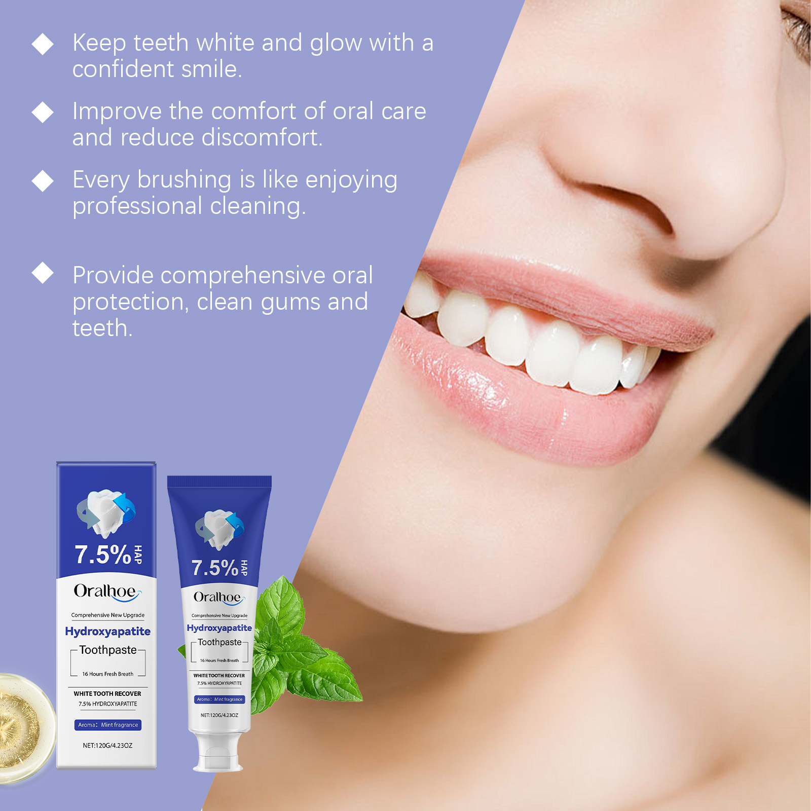 Oralhoe Brightening Tooth Care Toothpaste, Gentle Gingival Care Cleaning Stains And Tartar Fresh Breath Cleaning Toothpaste