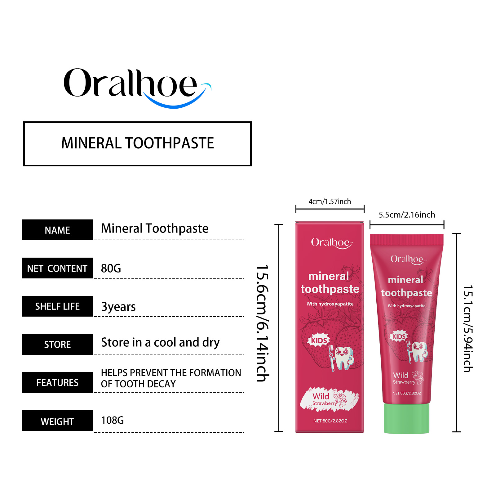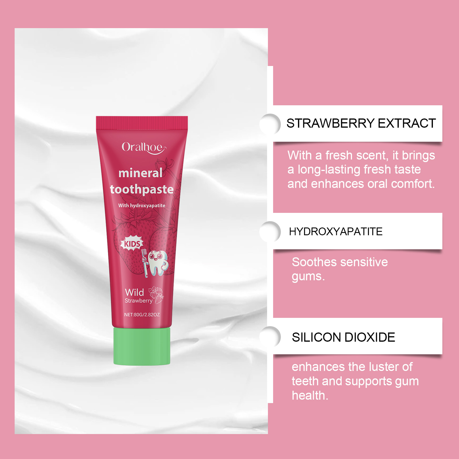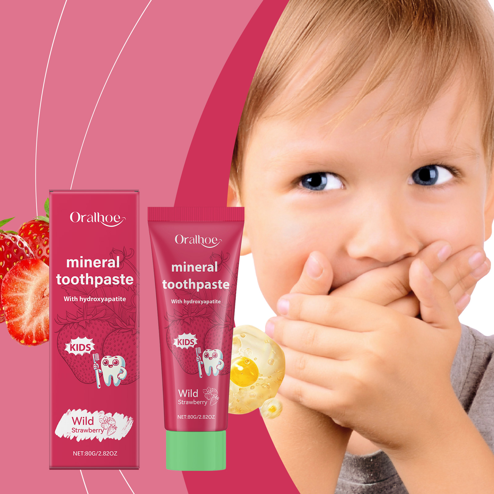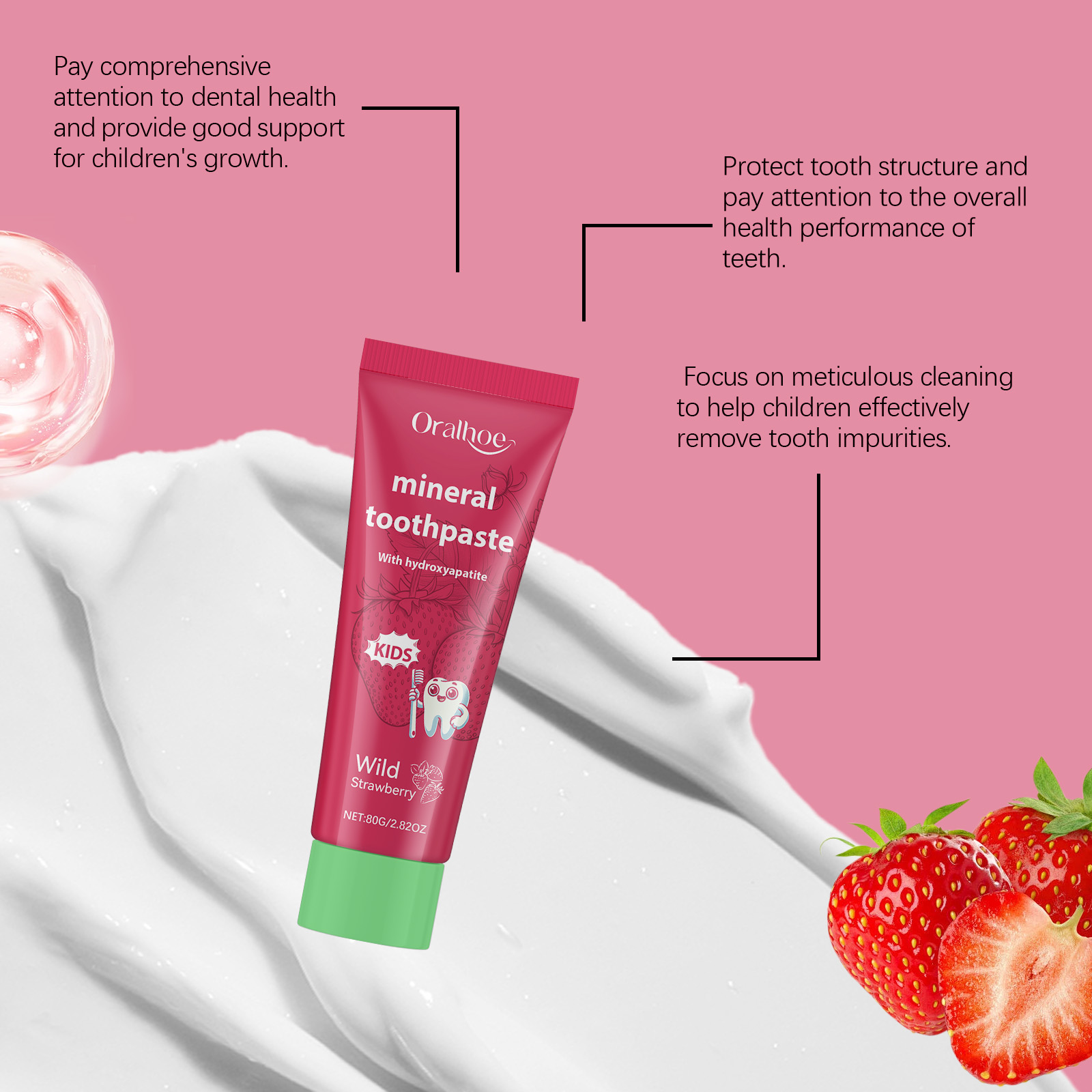 Oralhoe Strawberry Flavored Children's Toothpaste, Cleans Teeth Yellow Stains Care For Mouth Children's Care Toothpaste