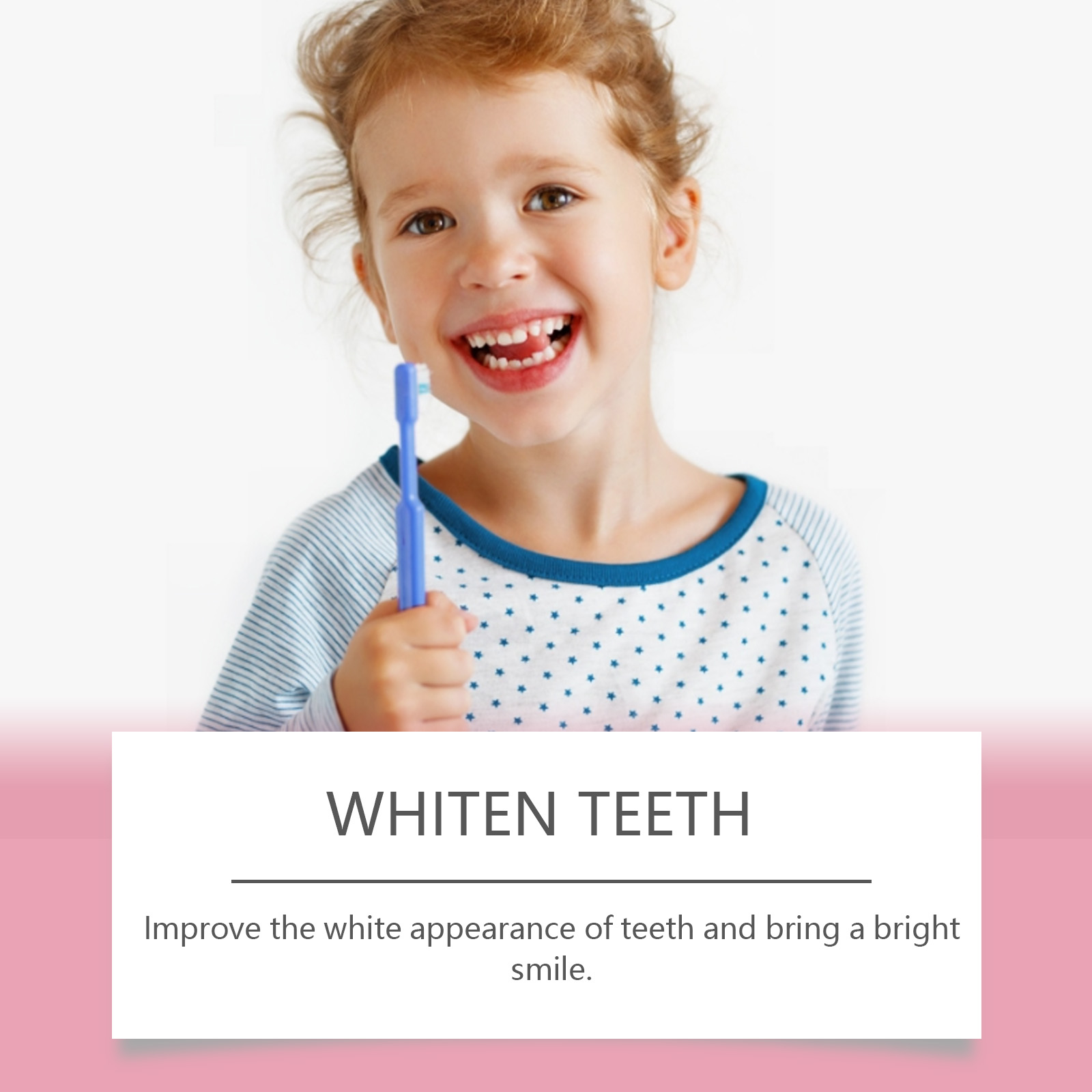 我们的草莓味儿童牙膏含有碳酸钙、山梨(糖)醇。它专注于日常蛀牙预防,保持儿童的口腔健康。有效保护牙釉质,减少日常食物对牙齿的影响。它的使用方法很简单:用清水漱口以湿润牙齿。在湿润的牙刷上涂上适量的牙膏,刷牙2-3分钟。用清水漱口直到干净。并且可以改善牙齿的白色外观,带来灿烂的微笑。