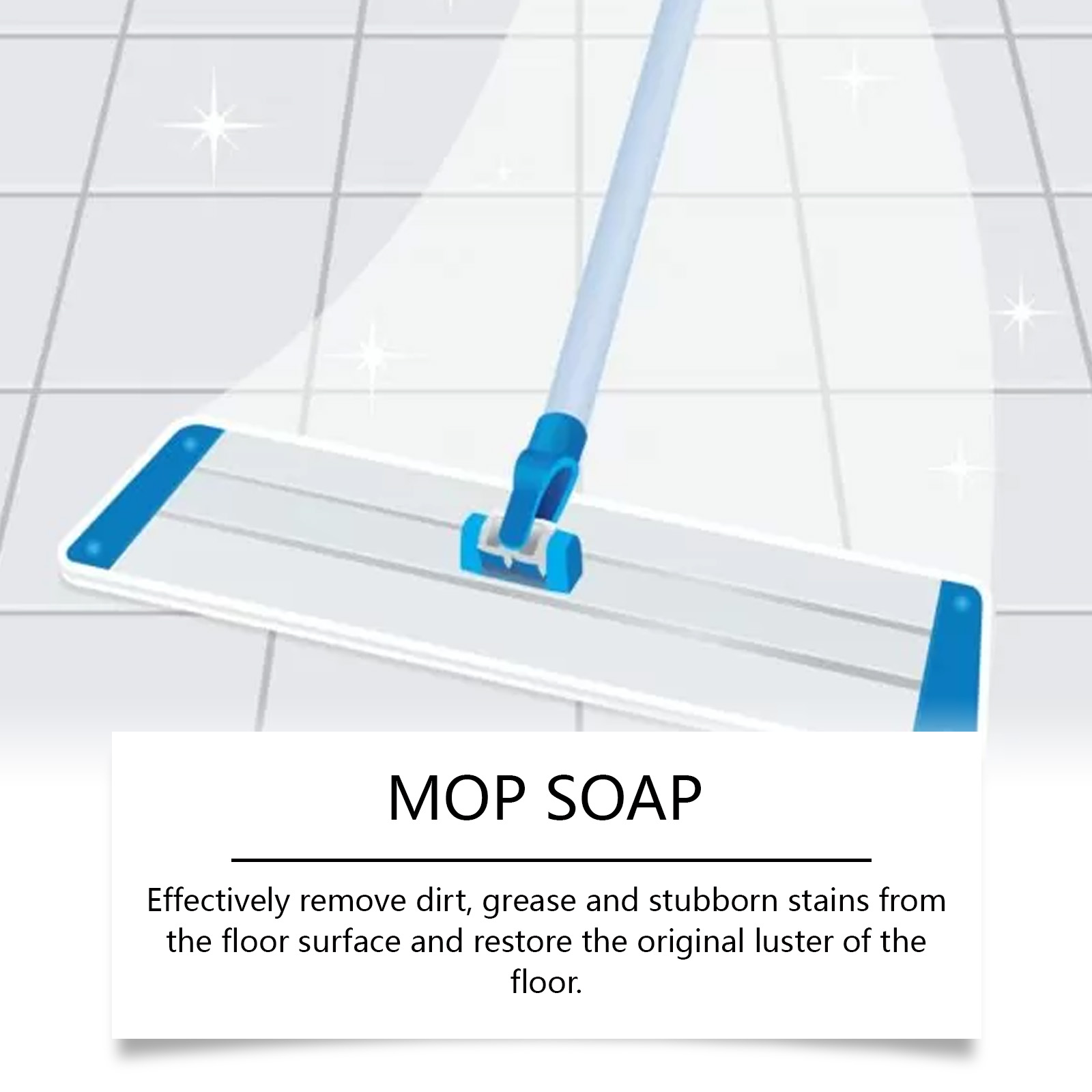 我们的拖把清洁剂含有表活剂、速干剂、乳化剂。它可以快速去除顽固污渍,使地板恢复清洁。它的使用方法很简单:取适量的洗涤剂,倒入拖把桶中稀释。将拖把浸入清洁液中,然后正常清洁。并且使用后快速干燥,方便日常清洁。